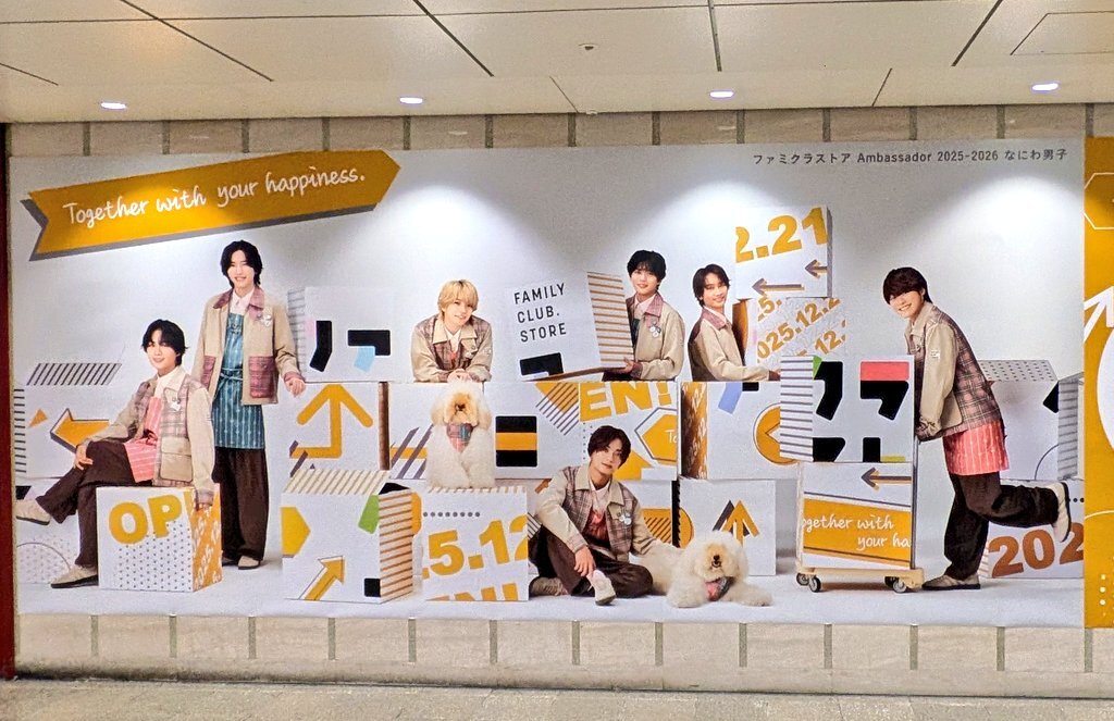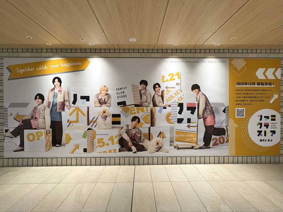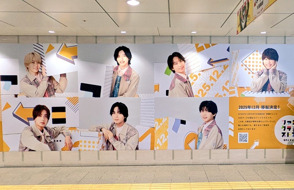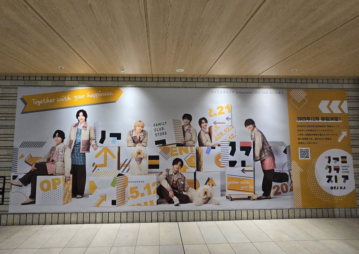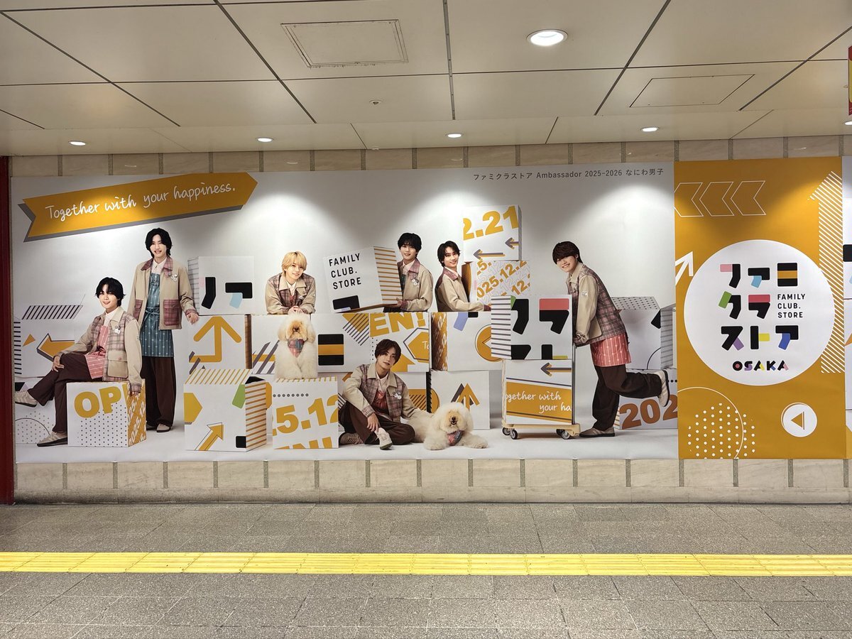 ファミクラストアアンバサダー広告 最終日に観てきた ☺︎🌼 阪急大阪梅田駅2Fコンコース~JR大阪駅 通路 阪神大阪梅田駅西口改札外壁面 #なにわ男子 #ファミクラストア pic.x.com/pZy2jRzk48