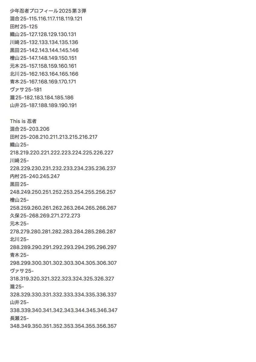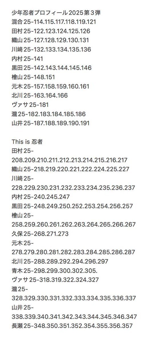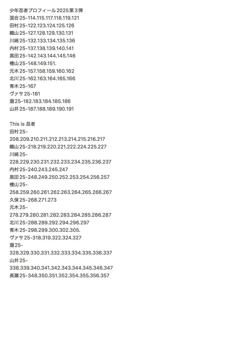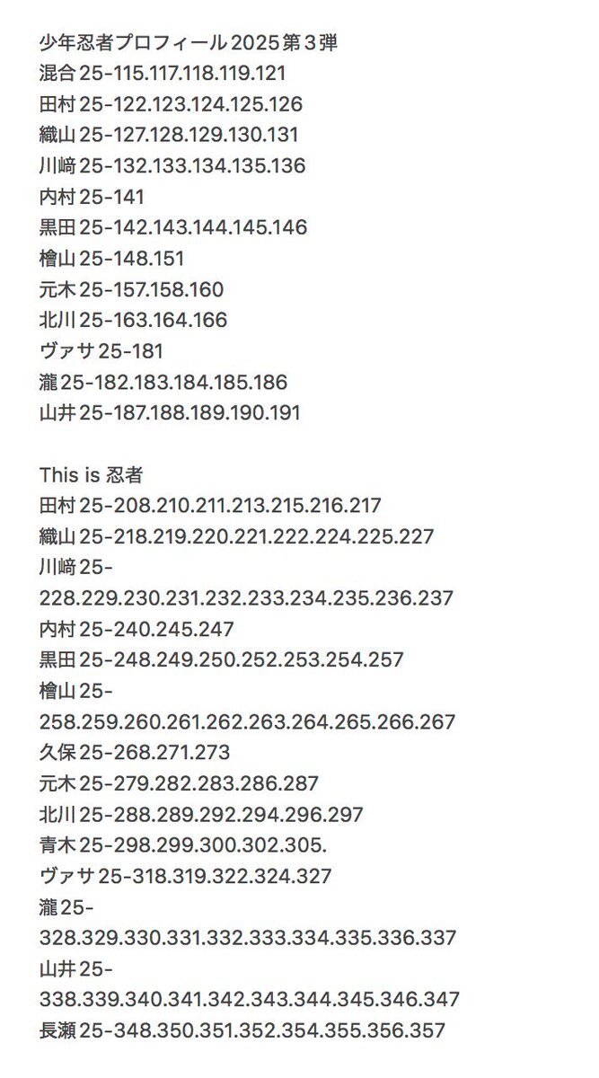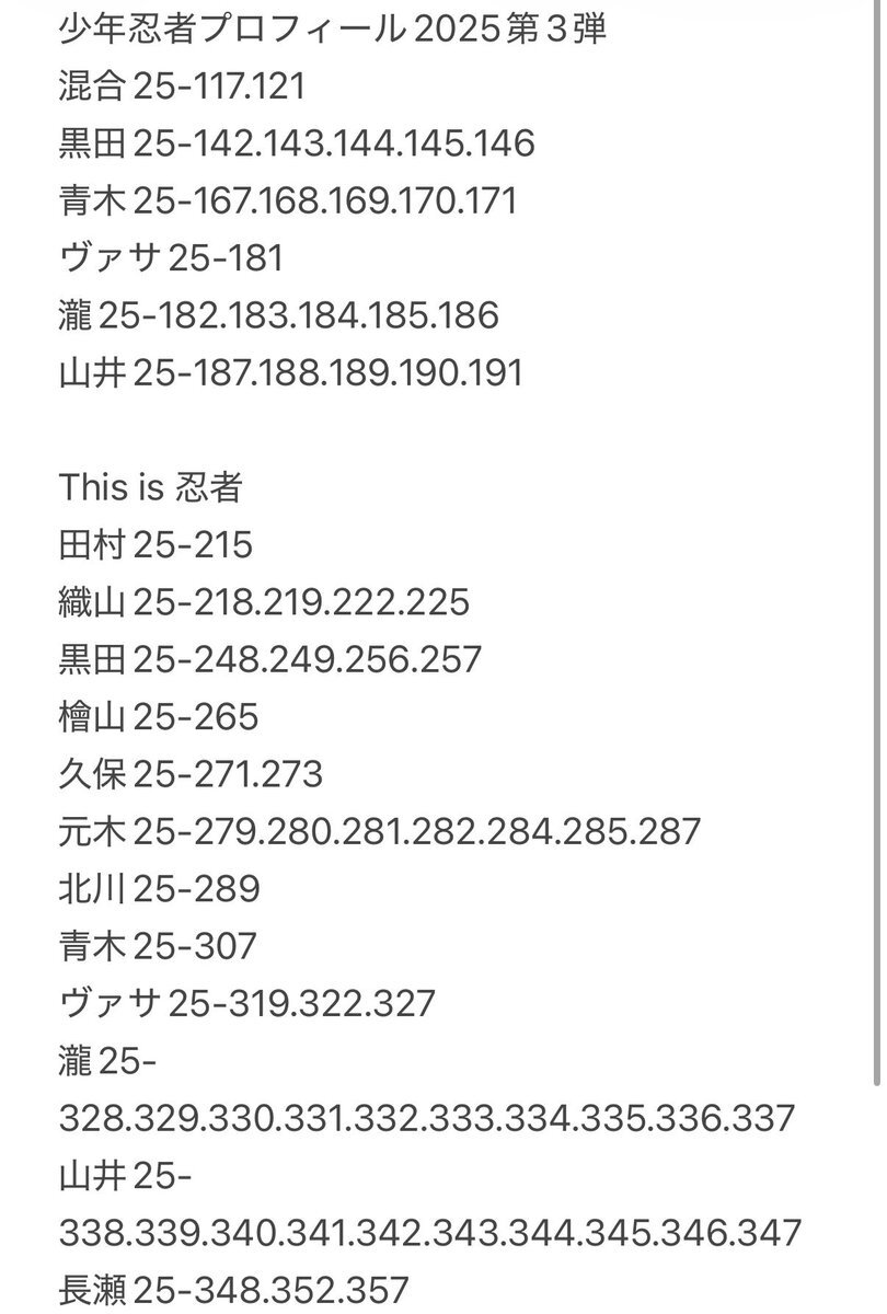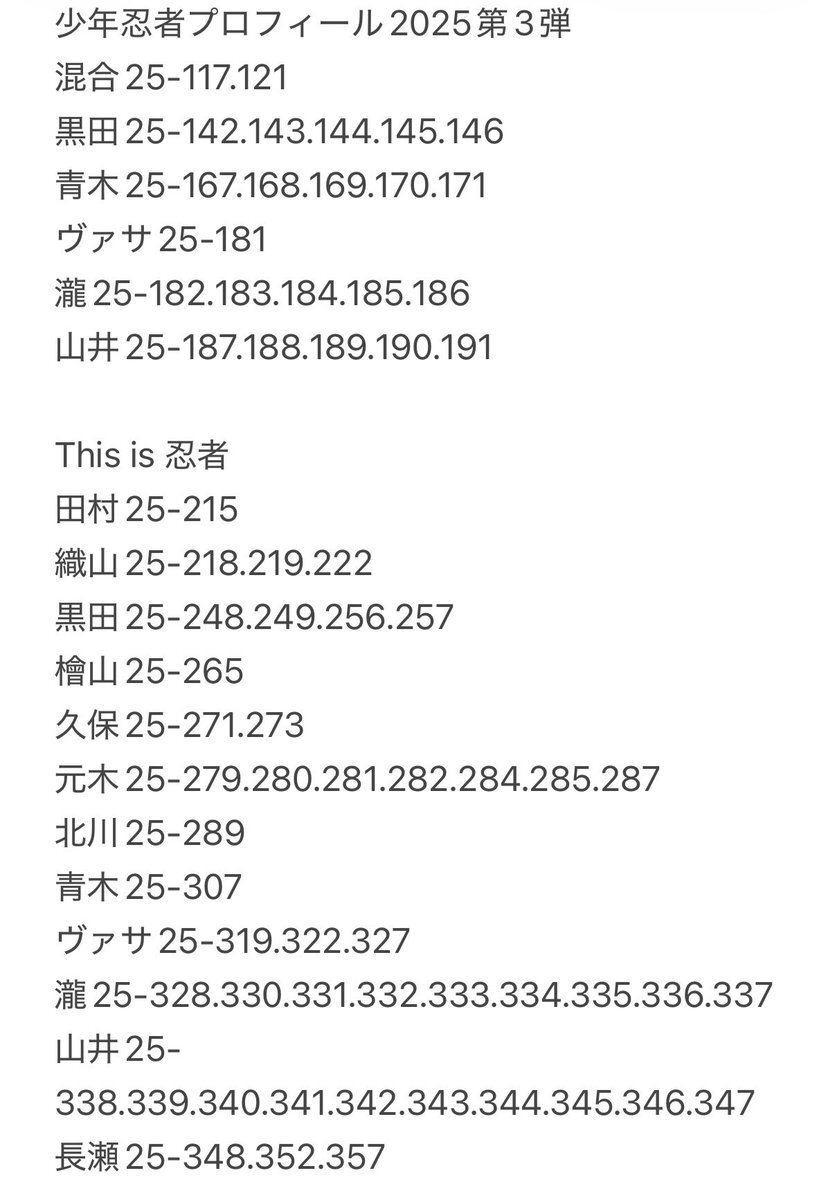 少年忍者渋谷ファミクラストア売り切れ 11/17 閉店時完売 写真のみになります。 プロフィール完売 田村織山川﨑黒田内村元木北川瀧山井 This is 忍者完売 田村川﨑檜山元木瀧山井 #少年忍者 #ファミクラストア pic.x.com/ROxM2AwACL