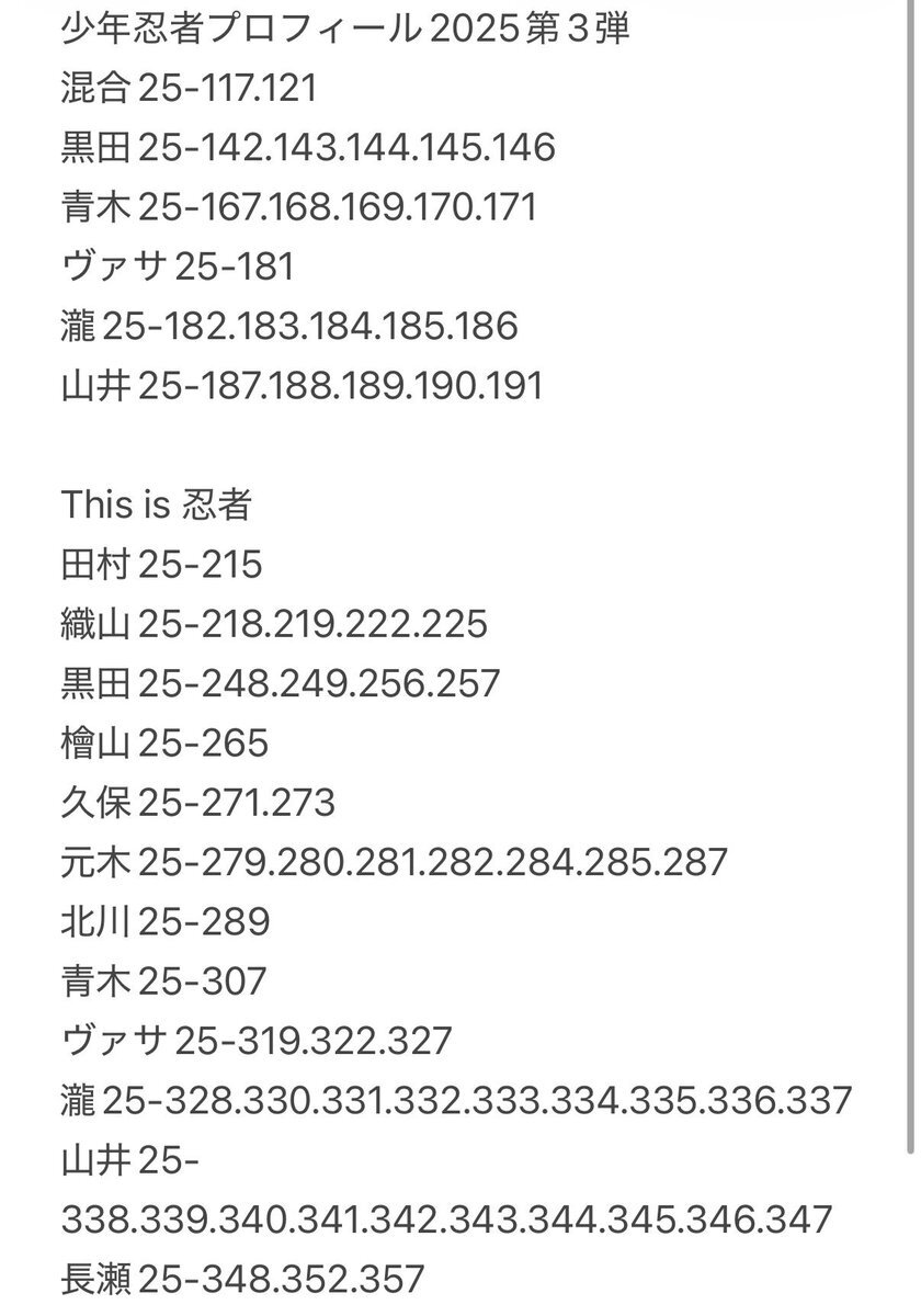 少年忍者渋谷ファミクラストア売り切れ 11/16 閉店時完売 写真のみになります。 全種完売 織山、川﨑、黒田、檜山、元木、北川、青木、瀧、山井 #少年忍者 #ファミクラストア pic.x.com/7kemsCl2Bq