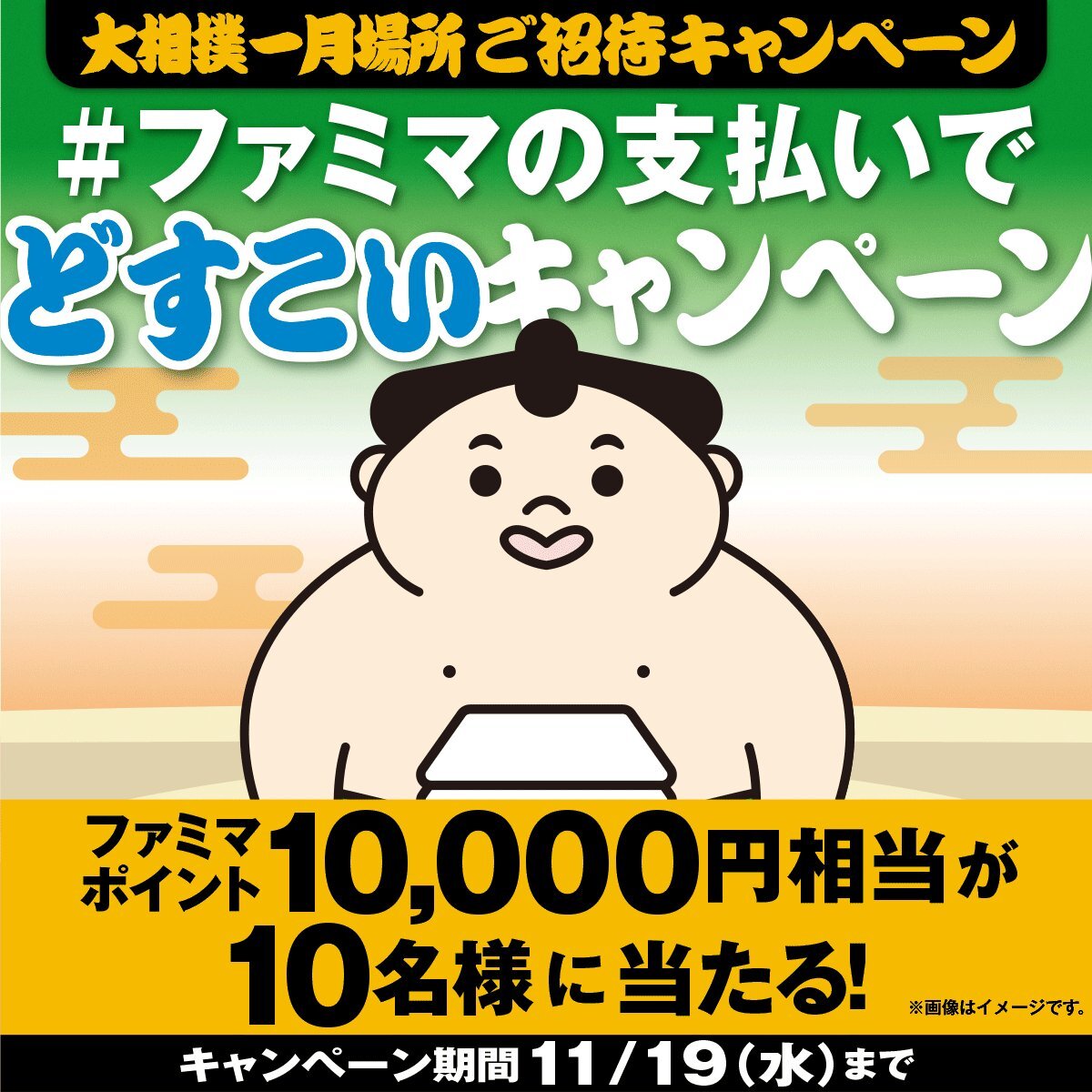 🫸🫸どすこい🫷🫷 🎁大相撲一月場所ご招待キャンペーン記念🎁 ファミマポイント10,000円相当が10名様に抽選で当たる! ▼応募方法 1⃣ @famima_now をフォロー 2⃣ この投稿に #ファミマの支払いでどすこい を付けてリプライ 本投稿をリポストすると当選確率UP❣❣ pic.x.com/oQldH5e761 x.com/famima_now/sta…