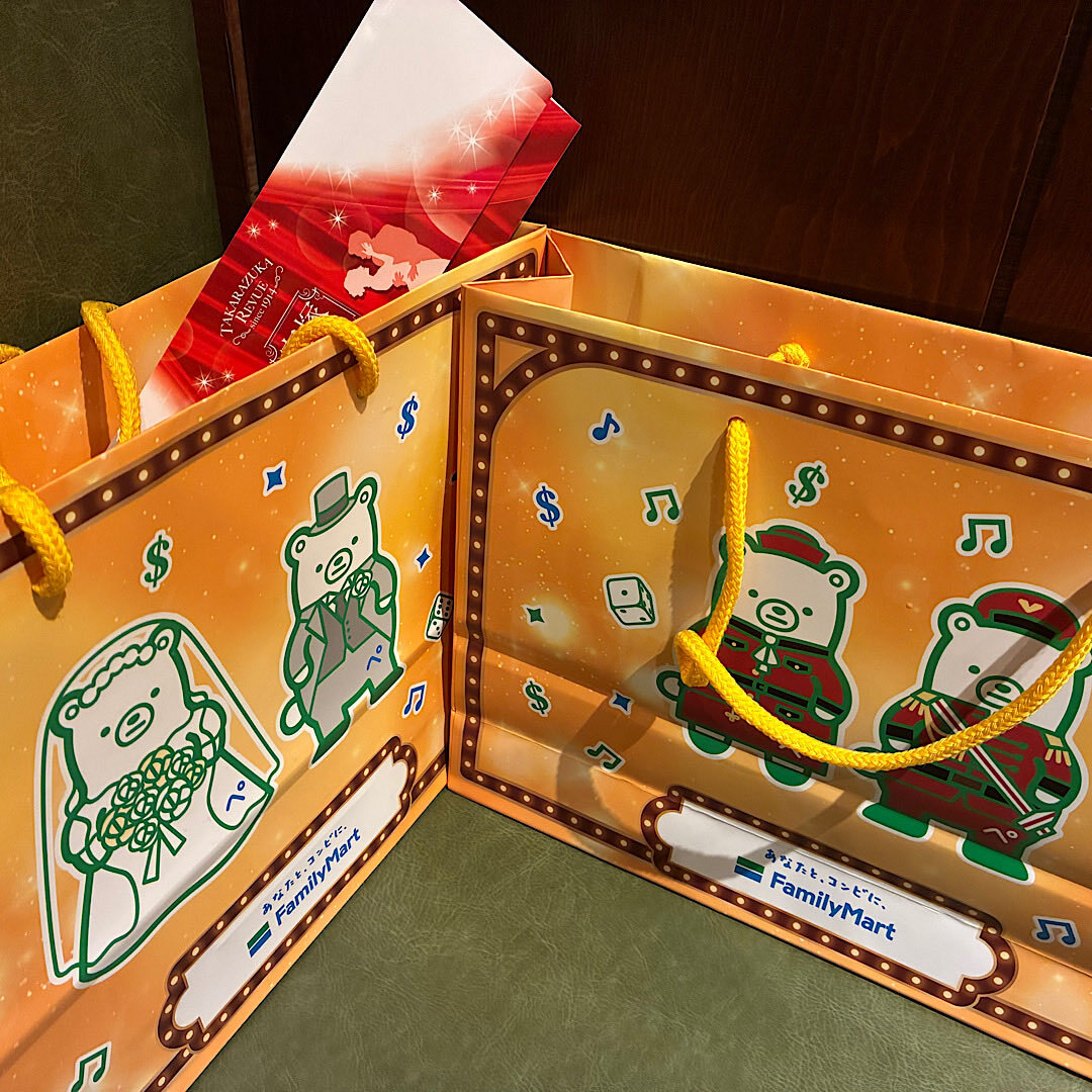 お土産のチケットホルダーと紙袋 ❄️のベルばらのと並べてみた🎵 色もイラストも愛が詰まってる。 前回同様、気温低➕☔️ 道案内する社員さんも お疲れ様でした。 大好きなファミマの貸切に参加できて、大好きな🌙組の演目みれて 大満足な1日でした。 ありがとうございました😊 #ファミマ貸切 pic.x.com/N7apwZYgrV