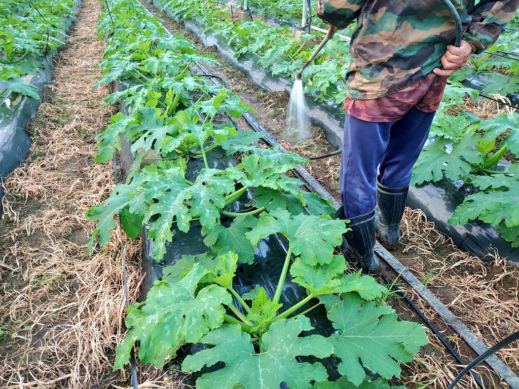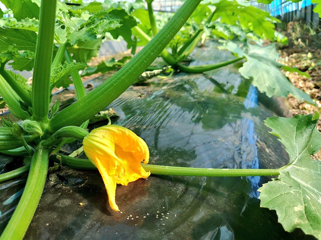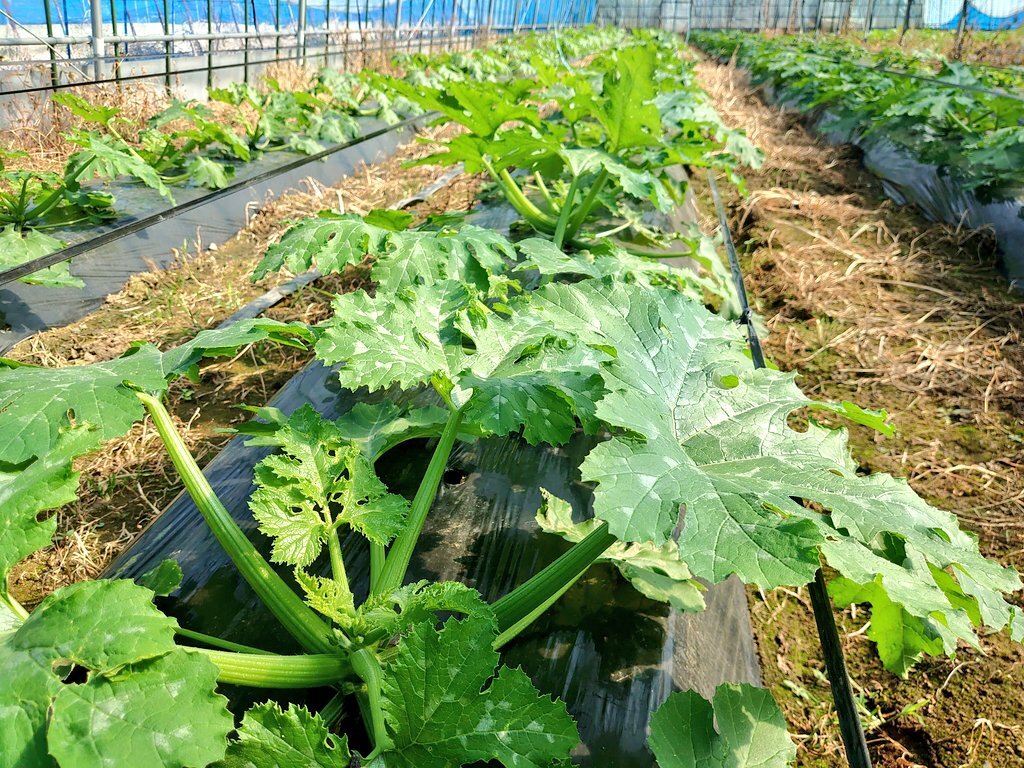 ハウス/第1ズッキーニ太陽を浴びて、伸び伸び大きく育ってる☀️ 収穫目前に、株の安定→花取り作業 微生物資材と液肥投入🚿(定期的) #農業 #農家 #農業男子 #ズッキーニ #ネット販売 #ファミリー農美家畑産地直送便 pic.x.com/SQfKNNH9wT