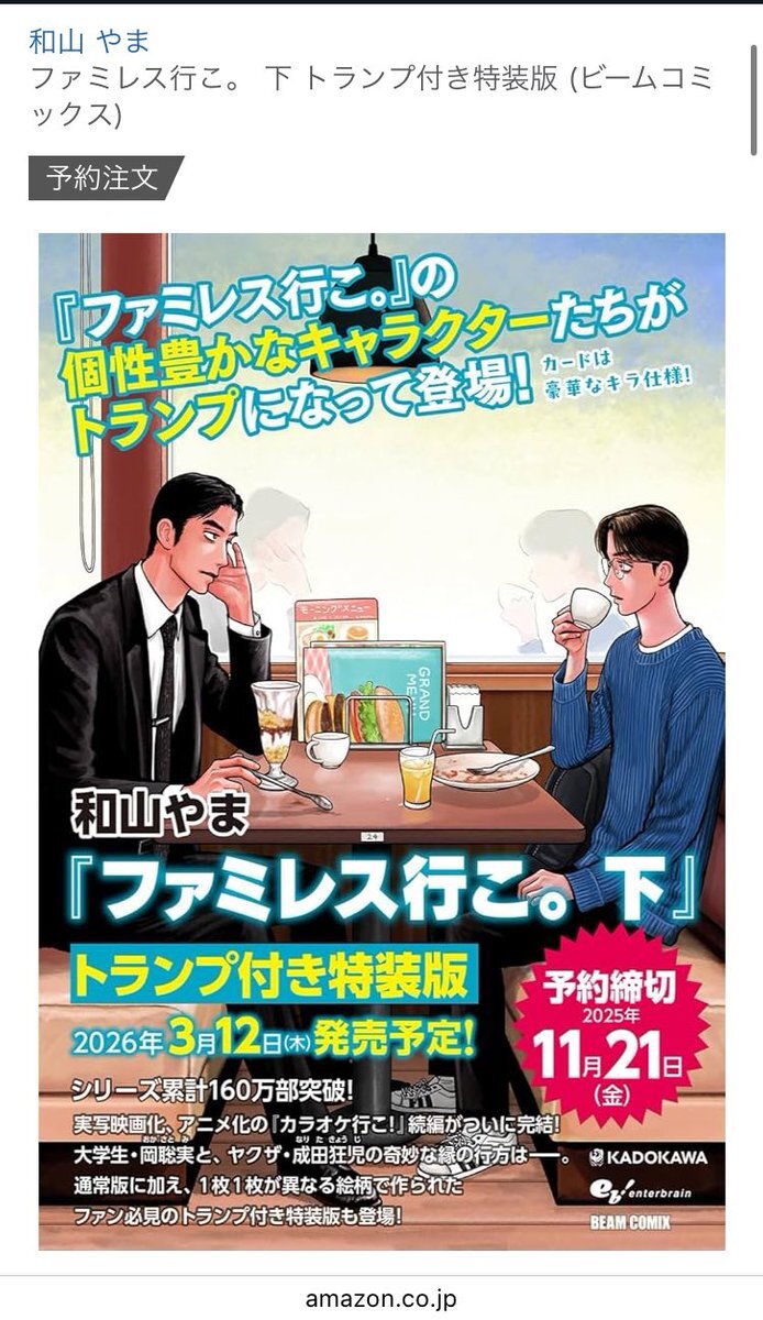 【書籍予約情報】 2026/03/12 発売予定 「ファミレス行こ。(下) トランプ付き特装版」 ご予約受付中!! #和山やま 先生 #ファミレス行こ。 ▼店頭にて簡単バーコード予約はコチラ▼ animate-onlineshop.jp/pd/3281719/?ut…