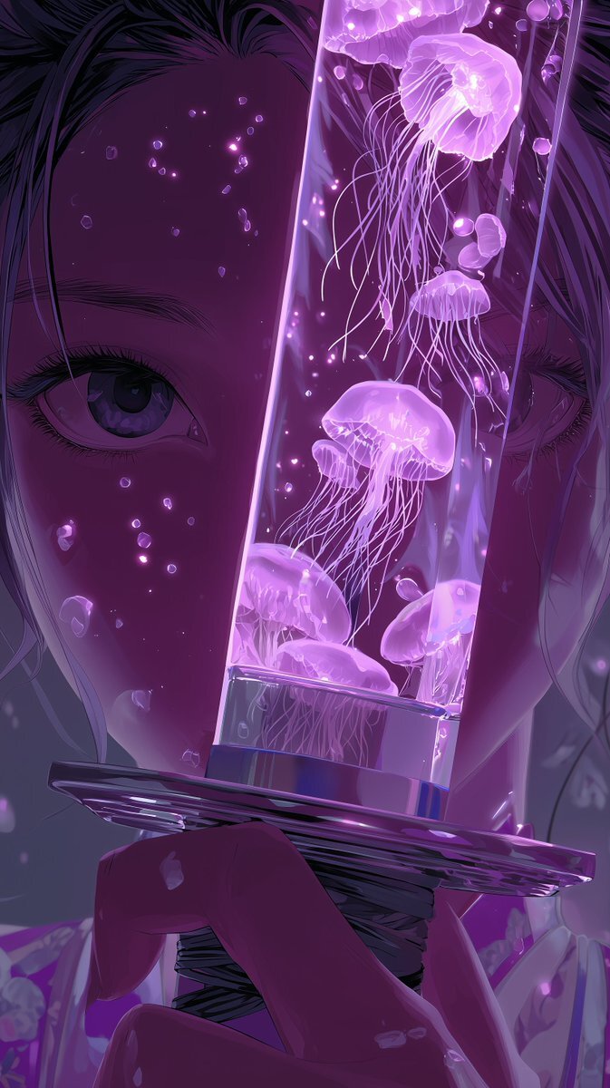 ✨幻想的な紫の世界✨ 透明な水槽に浮かぶクラゲたちの光 その神秘的な輝きに魅了される瞬間 深海の静けさと、儚く美しい生命 パープルの色彩が織りなす幻想空間 #ファンタジーアート #デジタルアート #クラゲ #幻想的 #紫の世界 #イラスト pic.x.com/NzPnRqaMjG