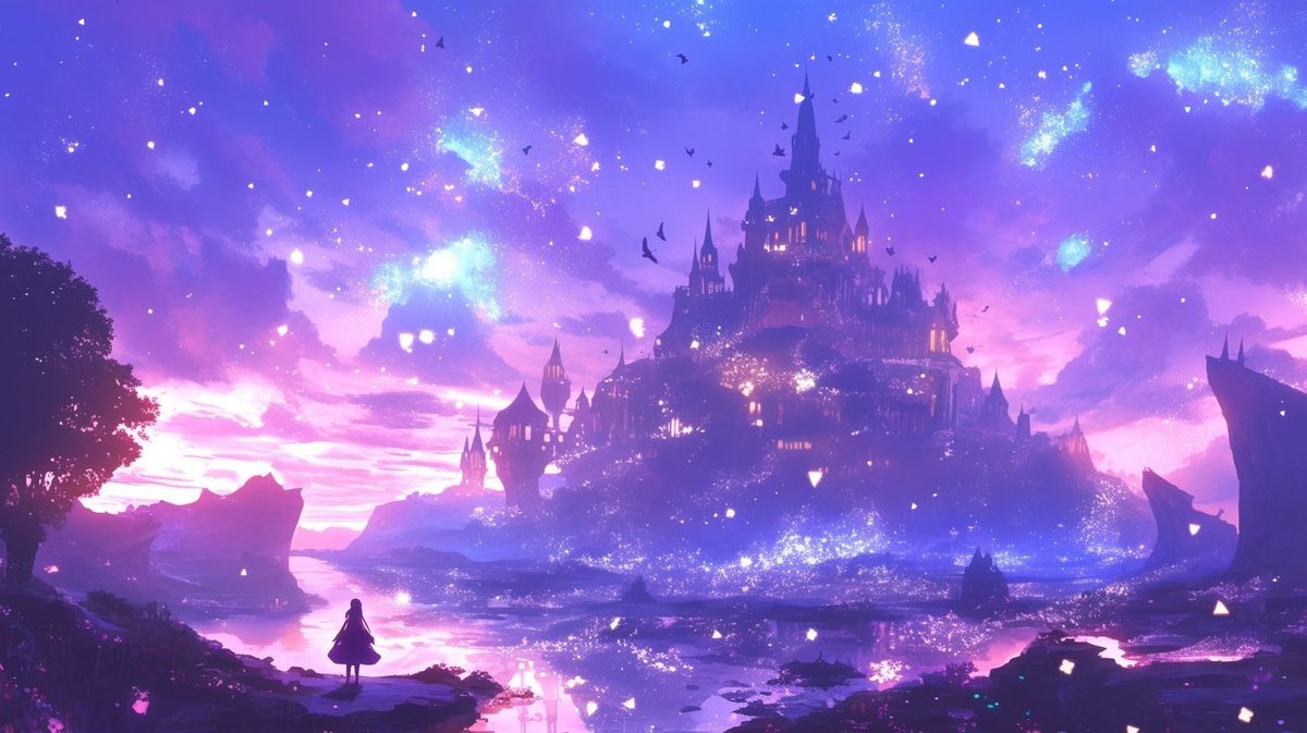 星の川の上に浮かぶ、 “夜だけの魔法のお城”🏰🌌 青と紫のファンタジー空が好き🥰🫶 #ファンタジーアート #夜空イラスト #AI幻想世界 #ミッドジャーニー作品 #光の魔法 pic.x.com/SoQpMn7ftD