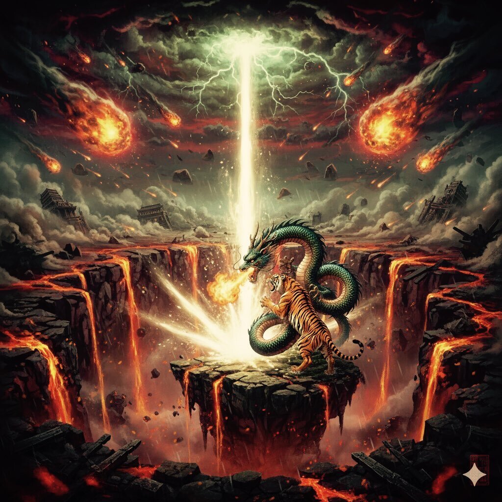《龍虎裂戦 -終焉の先のはじまり-》 ※JAN × ChatGPT #龍虎 #龍 #虎 #ドラゴン #タイガー #龍虎伝説 #ファンタジーアート #幻想世界 #終焉の先のはじまり #光と闇 #JANxChatGPT #物語シリーズ #digitalart #fantasyart #epicbattle #aiartcommunity #mythicalcreatures #dragonart #tigerart pic.x.com/f1qdfjjEUi