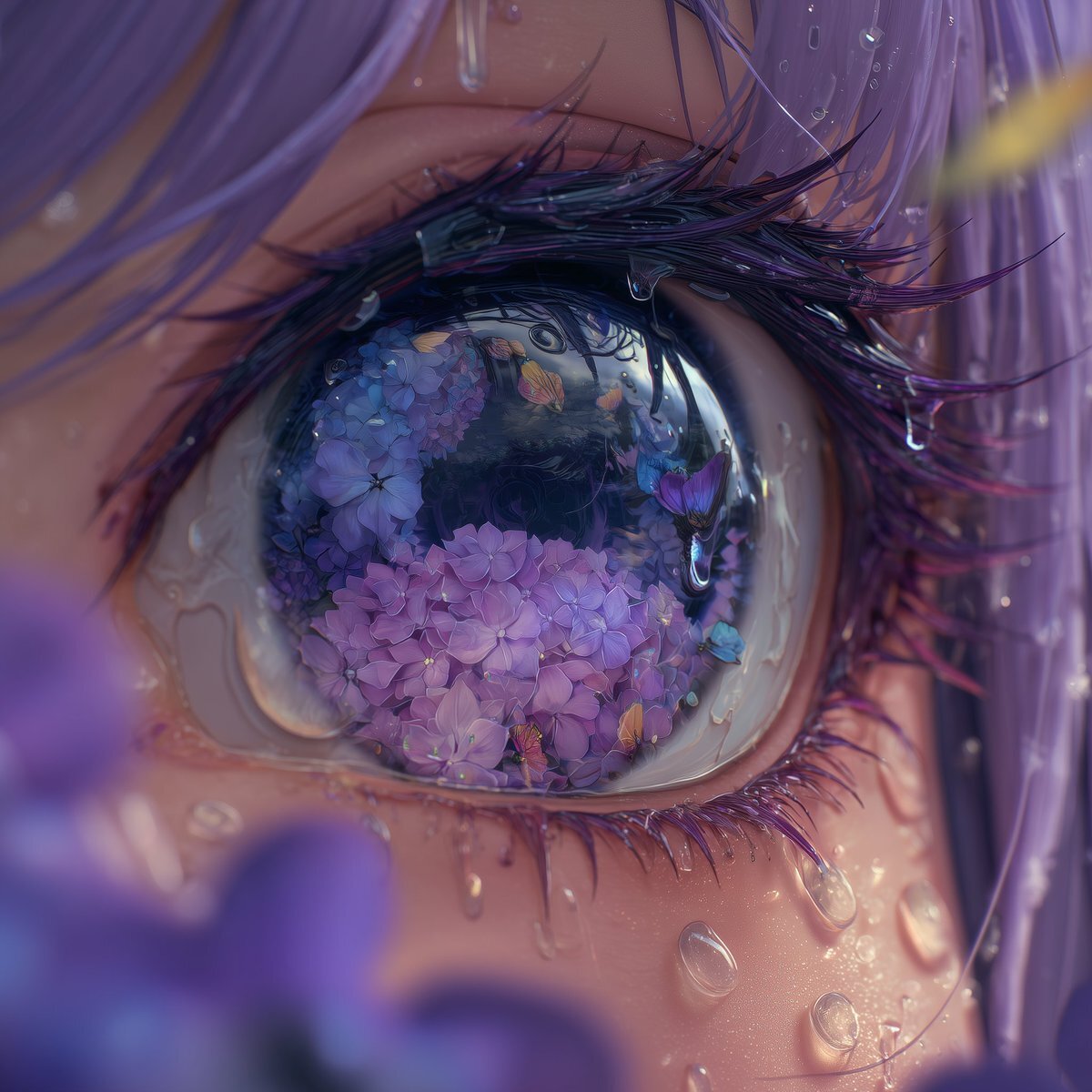 💧雨に濡れた紫陽花の瞳💧 パープルの優しい色彩に包まれた幻想世界。 しずくと共に流れる、切なくも美しい物語。 #イラスト #紫陽花 #梅雨 #幻想的 #デジタルアート #ファンタジーアート pic.x.com/QXccmTfDKd