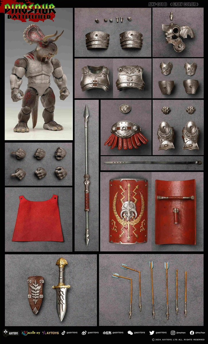ほか、武器のみアクセサリーパックもありますね。スクトゥム(古代ローマ槍兵の盾)... 古代ローマ文明はトリケラトプスが興したトリ。 #TRISKELE_HOBBY #AXYTOYS #DinosaurBattleField #ファンタジーフィギュアで遊ぼう pic.x.com/ZIxwT6qMil