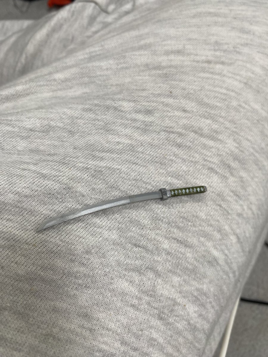 刀が欲しかったのだけど、持ってないのでプラモのジャンクから発掘した刀に手を加える 柄巻のモールドをカッターでいれたのだけど写真じゃわからないかなー? 自分的には良い感じにできたと思う 小さすぎて何度も指先が危なかった #ファンタジーフィギュアで遊ぼう pic.x.com/eZWv0TN6mB