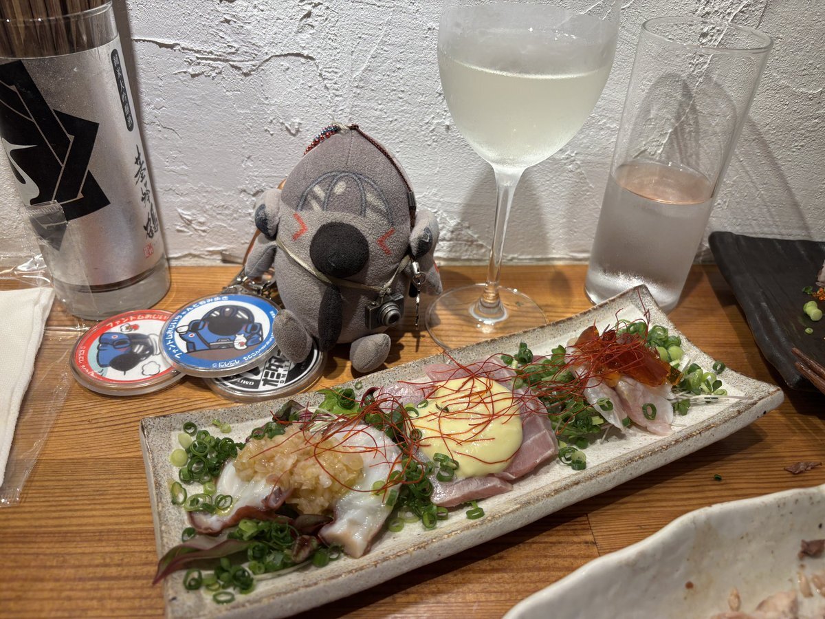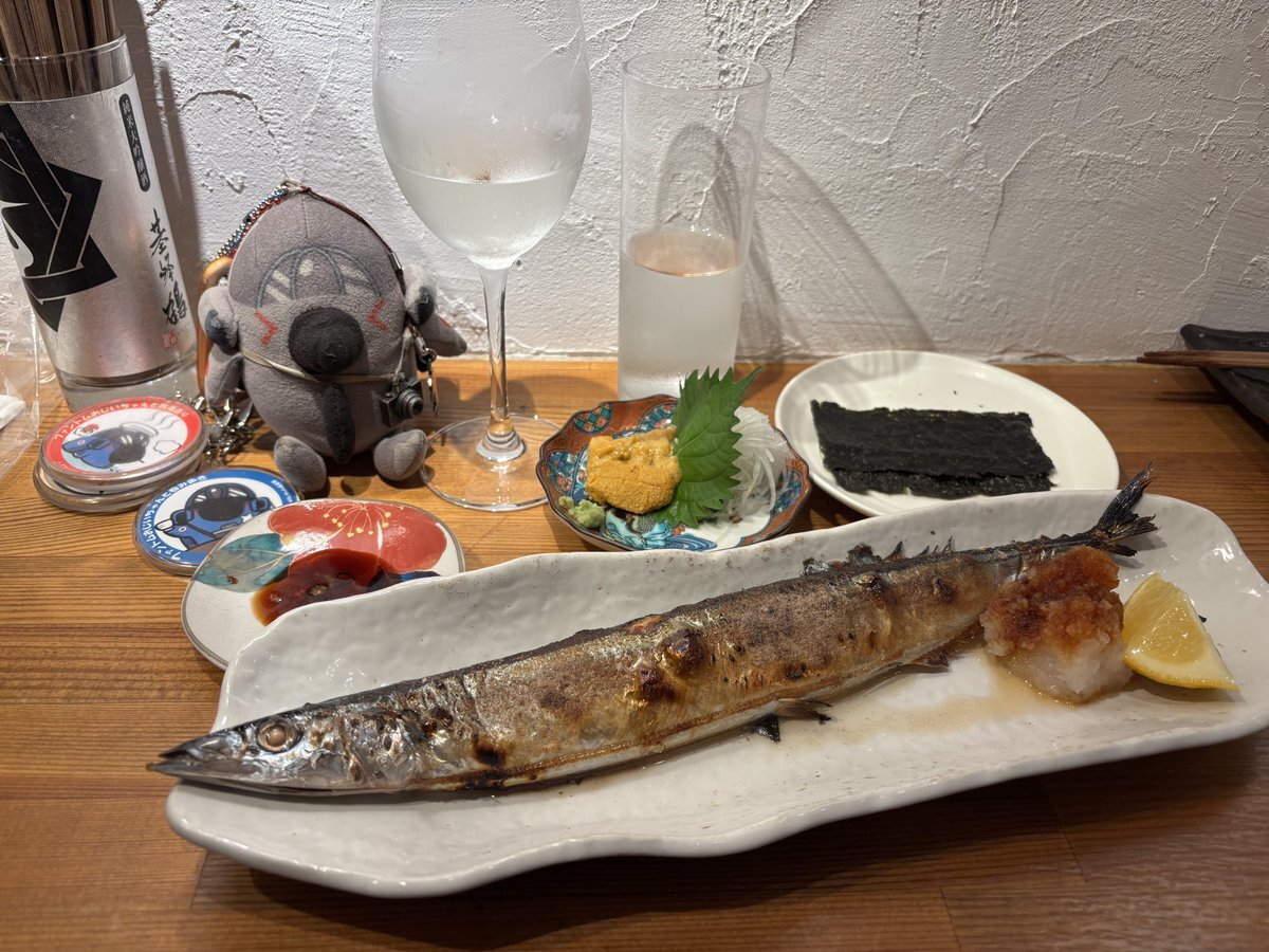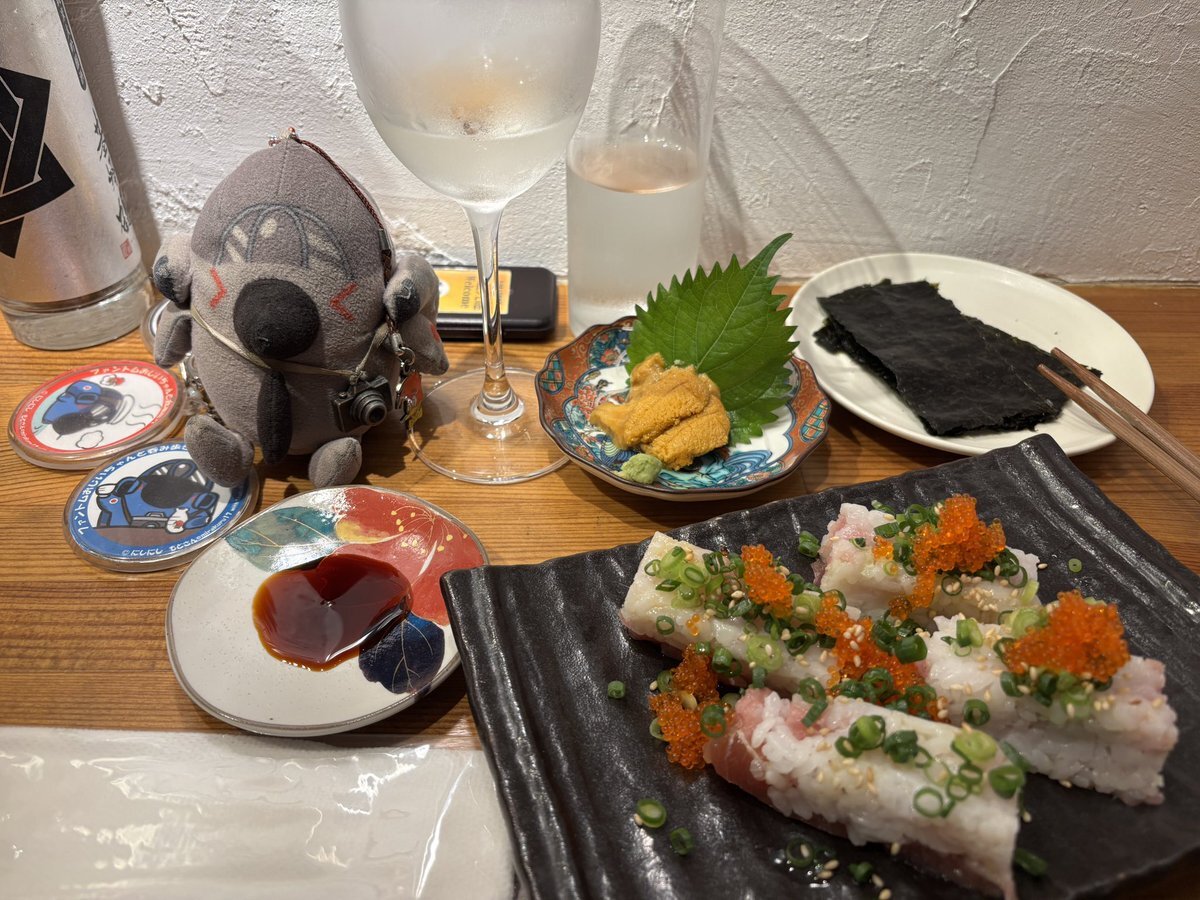 アテは うに、鉄火巻、秋刀魚、カルパッチョ うまうまじゃ(笑) #ファントムおじいちゃんと吞み歩き #角打ちナダヤ pic.x.com/vHcB6ETdDT