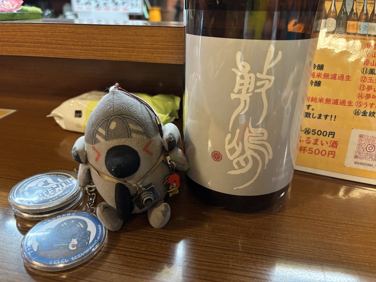 補足 お酒は 敷嶋山田錦特別純米無濾過生原酒7号酵母 お通しは 酒粕カレー~どて煮風 #ファントムおじいちゃんと吞み歩き #日本酒ゴーアラウンド岡山 #成田家栄町店 #伊東