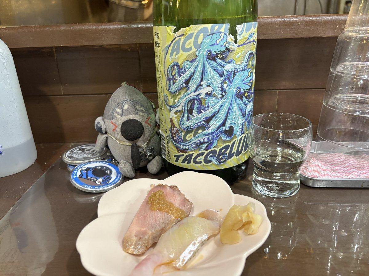 日本酒ゴーアラウンド岡山 13軒目は らあめん 鬼ぼしさんで セメントシャリの鬼寿司 × 滋賀北島酒造さんの 北島TacoBluuue   うまうまじゃ(笑) #ファントムおじいちゃんと吞み歩き #日本酒ゴーアラウンド岡山 #らあめん鬼ぼし #北島酒造 pic.x.com/SaiYdW1xMm