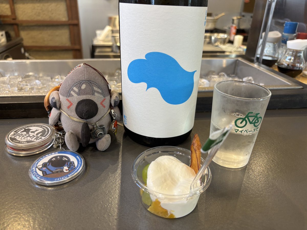 補足 お酒は 越後鶴亀 越弌Episode4.3 お通しは 季節フルーツの酒粕クリームがけ #ファントムおじいちゃんと吞み歩き #日本酒ゴーアラウンド岡山 #柳町自転車商会 #越後鶴亀