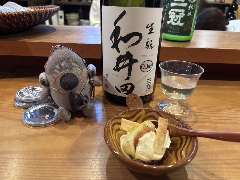 補足 お酒は 和井田雄町純米きもと造りR3BY一回火入れ お通しは 自家製あんこと白味噌豆腐クリーム #ファントムおじいちゃんと吞み歩き #日本酒ゴーアラウンド岡山 #あまおと #三冠酒造