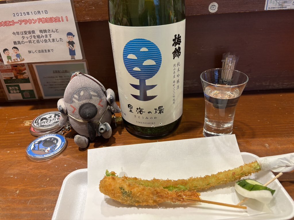 日本酒ゴーアラウンド岡山 10軒目は くしあげ飯房 ごんごさん くしあげ飯房 ごんご× 愛媛梅錦山川 梅錦里海の環 うまうまじゃ(笑) #ファントムおじいちゃんと吞み歩き #日本酒ゴーアラウンド岡山 #くしあげ飯房ごんご #梅錦山川 pic.x.com/zCv9BjfijJ