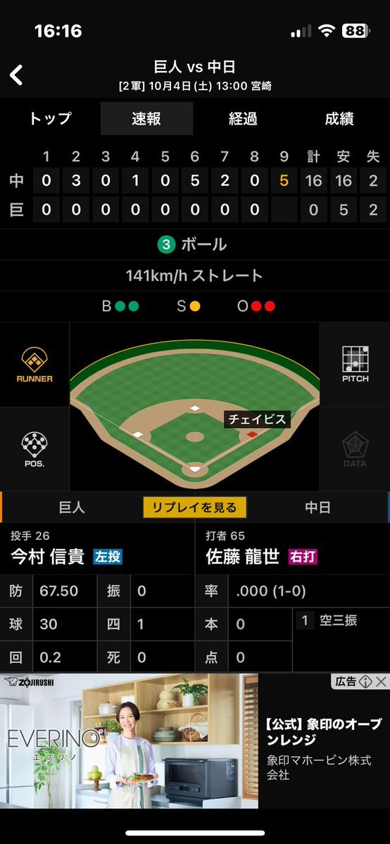 #ファーム日本選手権 #ファーム日本一決定戦 #中日ドラゴンズ が16-3で #読売ジャイアンツ に圧勝🎉 14年ぶり7度目のファーム日本一。 大量点ゲットのドラゴンズ、点が入ると燃えよドラゴンズが沢山流れた。 一方、ビバジャイアンツは9回裏に3回流れた。