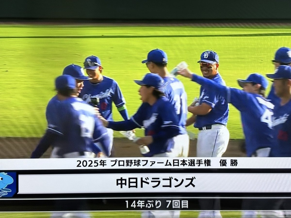 #中日ドラゴンズ 選手、スタッフ、ファンの皆様 ファーム日本一おめでとうございます😊 すでに1軍で活躍している選手もいますが、来年の対戦が怖いですね(笑) #dragons #ファーム日本一決定戦 x.com/DAZNJPNBasebal…