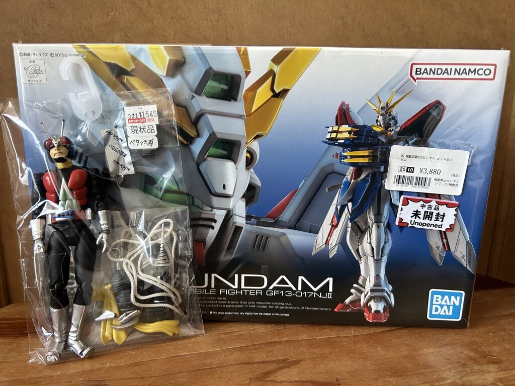 #購入品報告 ライダーマンとゴッドガンダムです(*´∀`)♪ ライダーマンはベタついてるらしいですが基本的に状態は気にしないので全力で遊ぶ飲みであります| ‾᷄ω‾᷅)و✧グッ RGゴッドはこれで5機目です🤪 一番大好きな機体なので無限回収しております😎👍 当然楽しみながら組んでゆく~♪(´ε` )