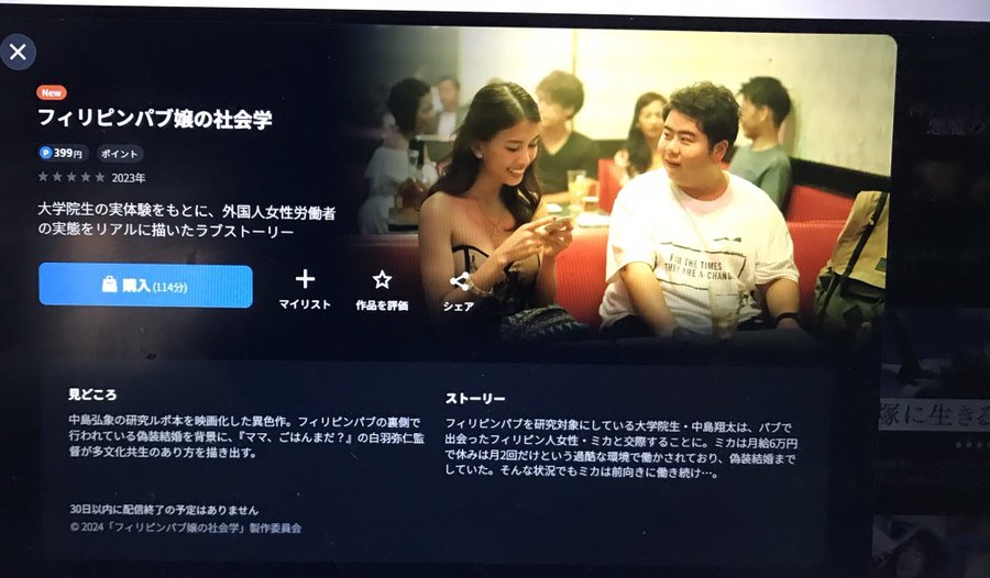 映画「#フィリピンパブ嬢の社会学」配信始まりましたよ。昨年の舞台化に続き、来年にはミュージカルになります。お楽しみに! x.com/movie_Phili_pu…