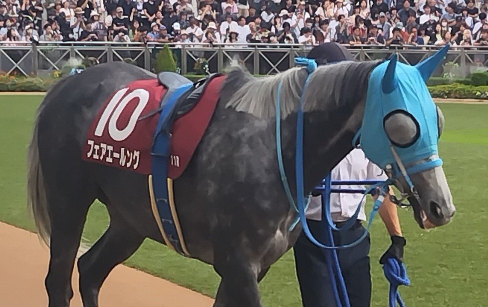 ありがとうフェアエールングちゃん🩶🩵 (動画は2025.09.21 オールカマー パドック) #フェアエールング #お疲れさま #ゴールドシップ産駒 #ゴルシの娘 #小倉牝馬S第1回勝ち馬 #芦毛の馬体に水色メンコ #未来に幸あれ #大好き pic.x.com/mjXTUtMAxi