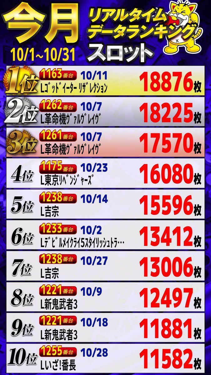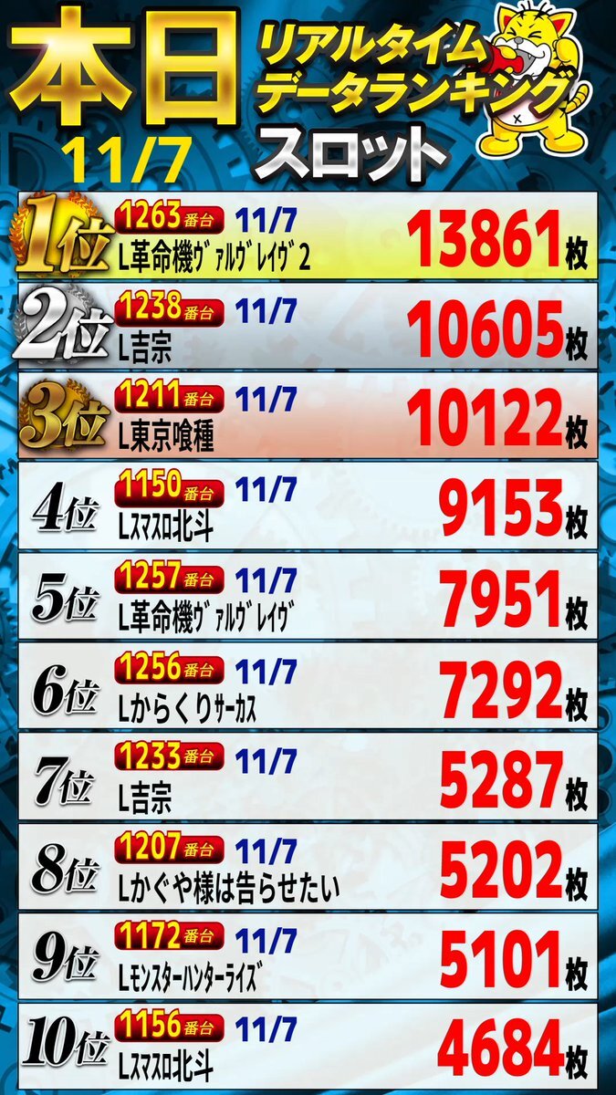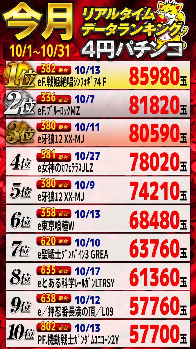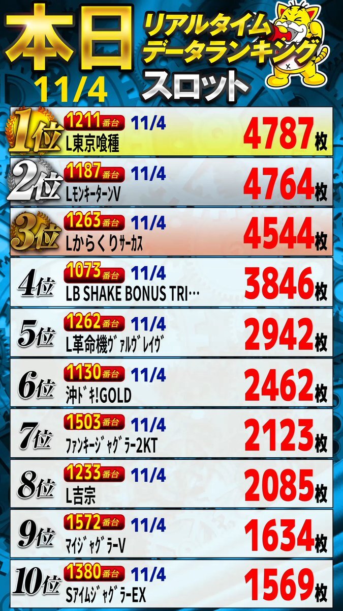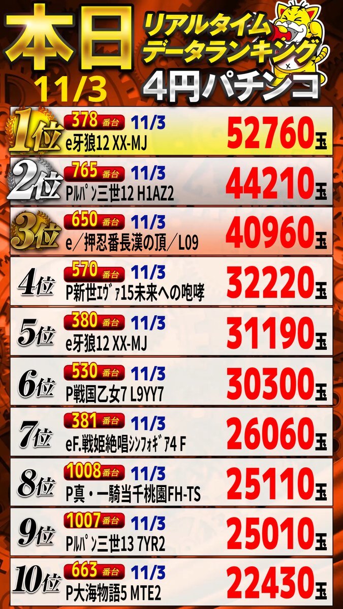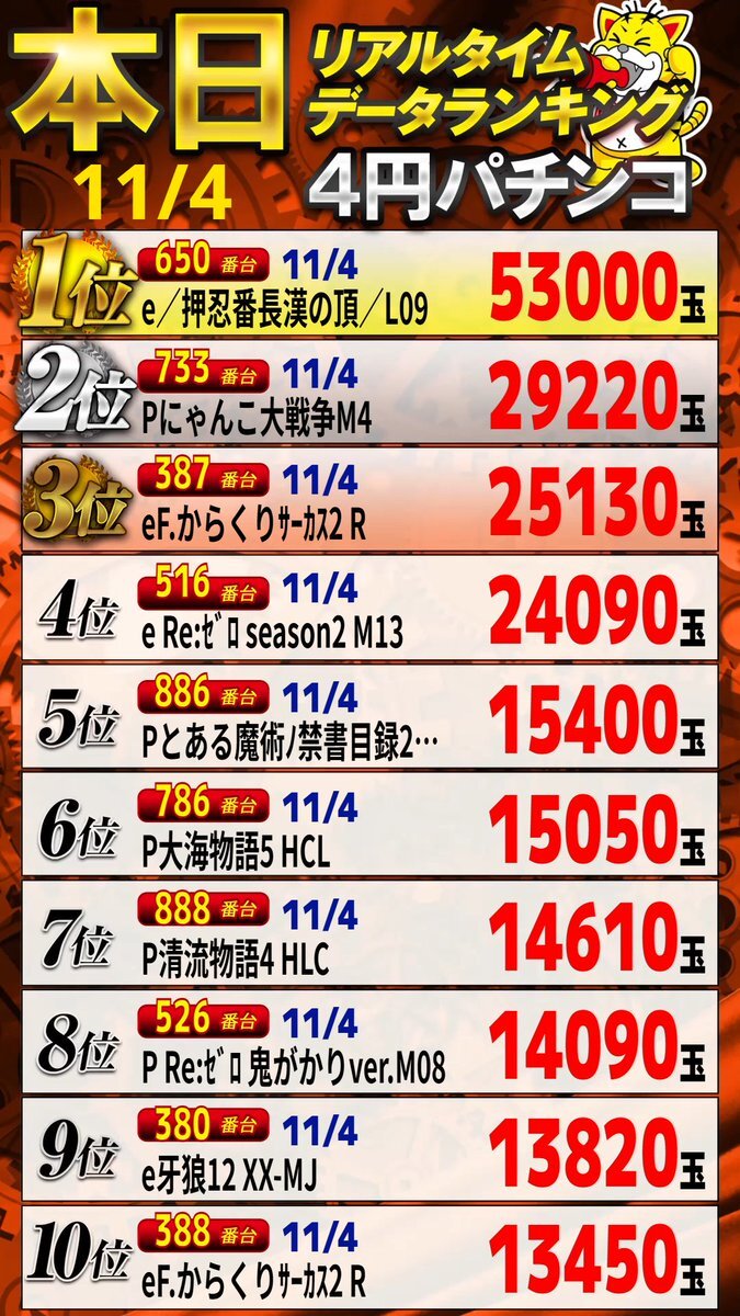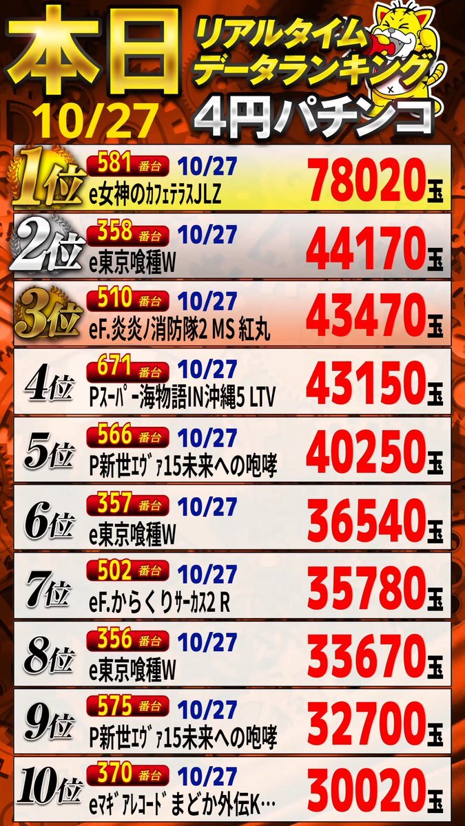 スロットはなんと4機種が ㊗㊗ランクイン🎉🎉 明日も朝から待ってるぜっ✌ #フェイス宮田 pic.x.com/l2y9UluoKy