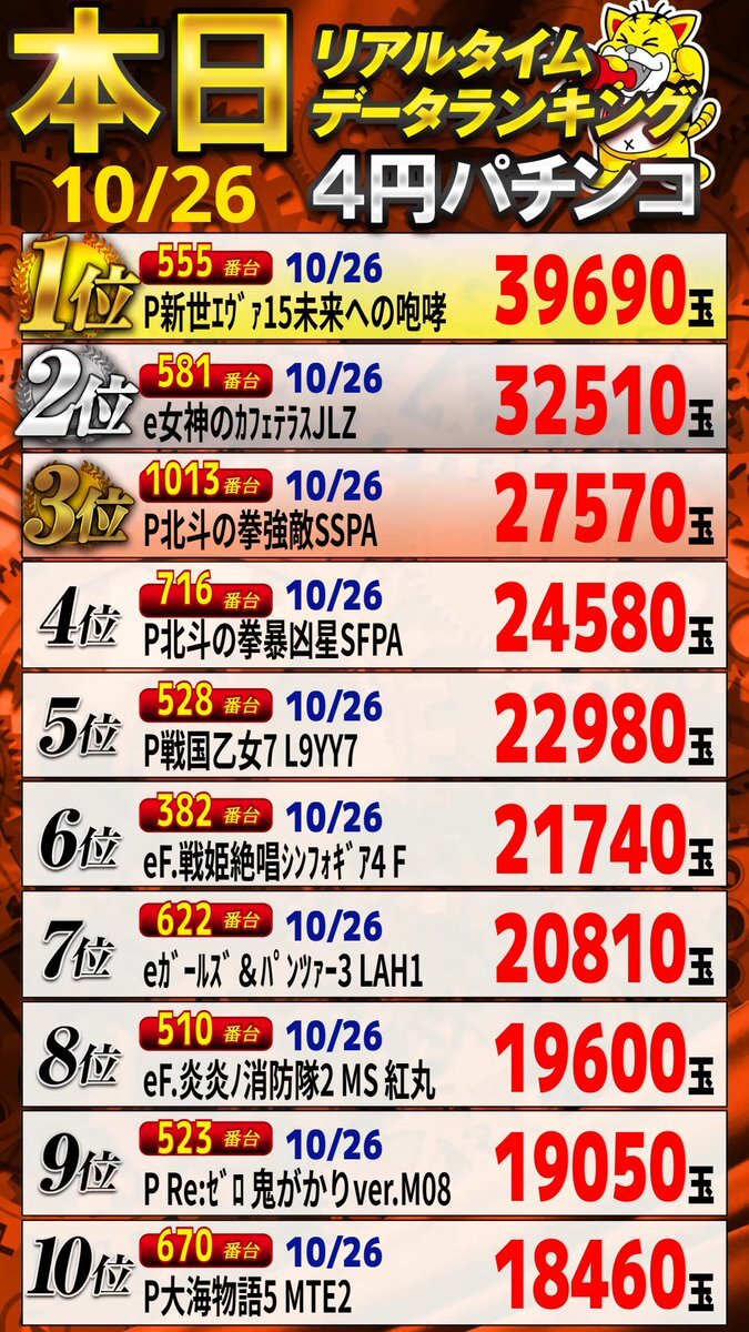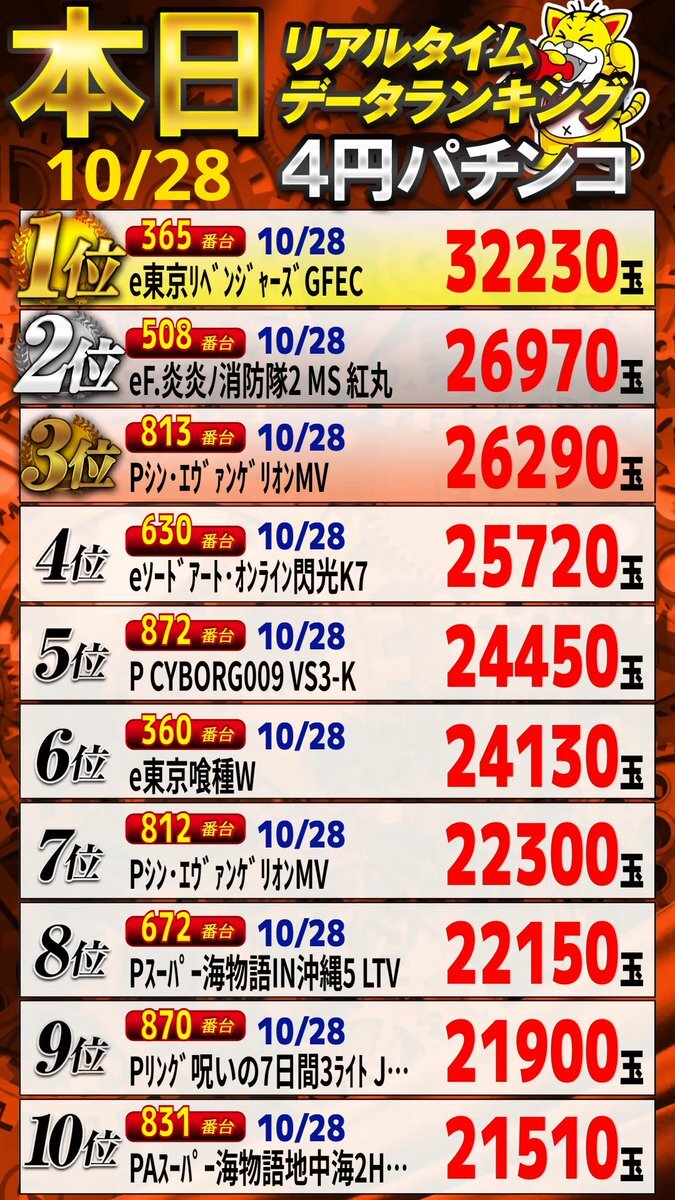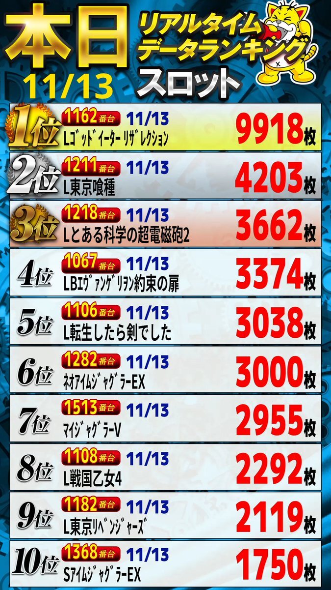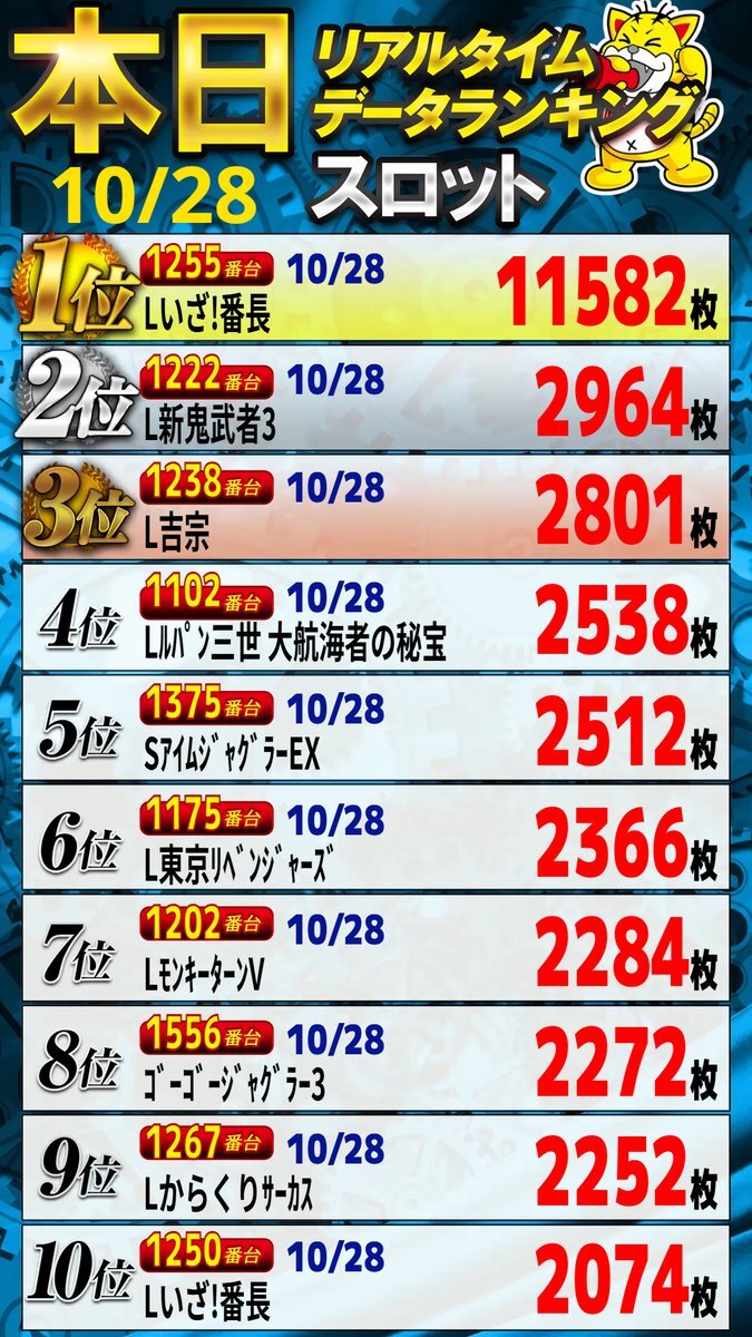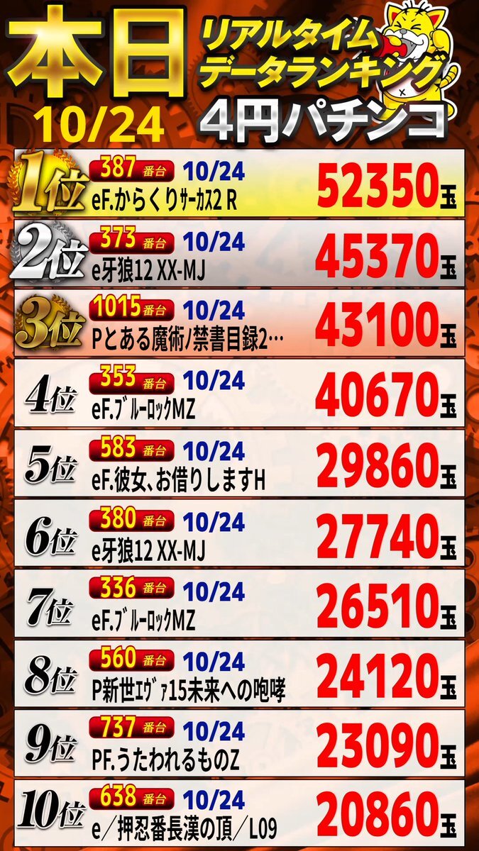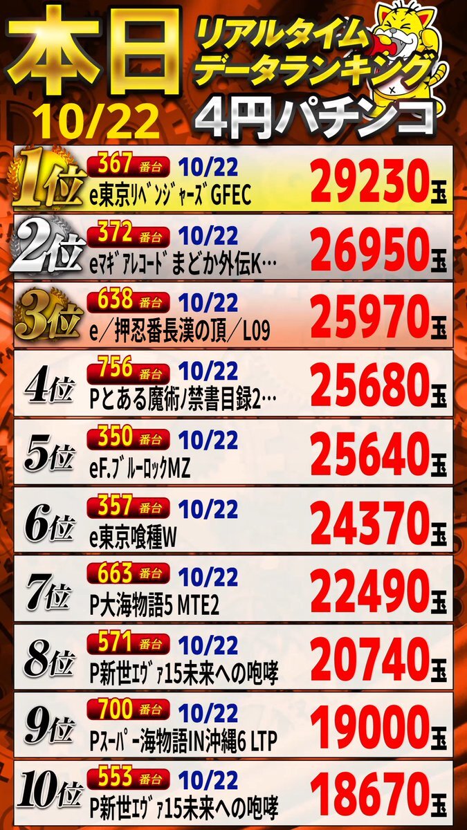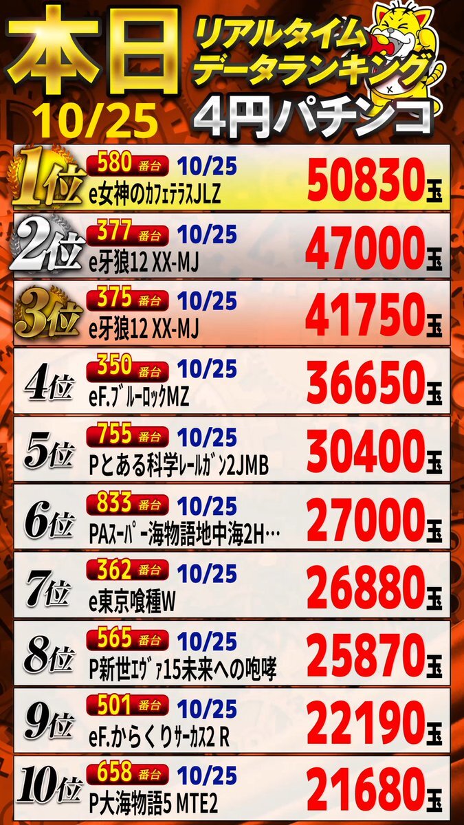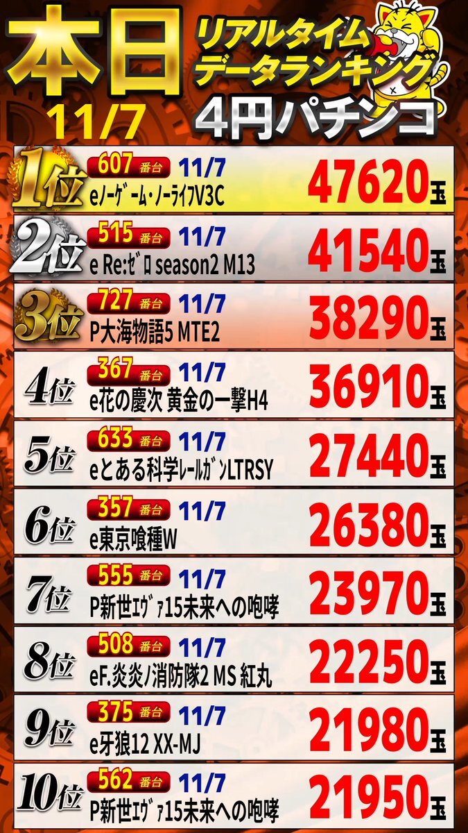 スロットはなんと4機種が ㊗㊗ランクイン🎉🎉 明日も朝から待ってるぜっ✌ #フェイス宮田 pic.x.com/l2y9UluoKy