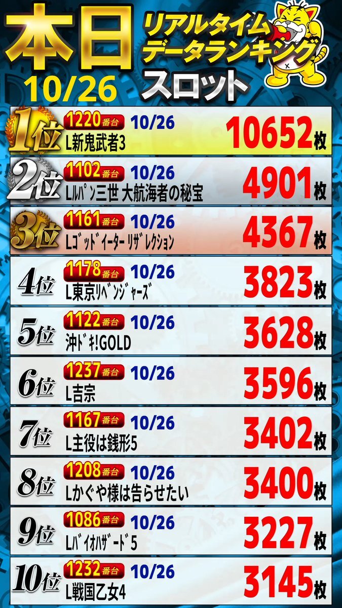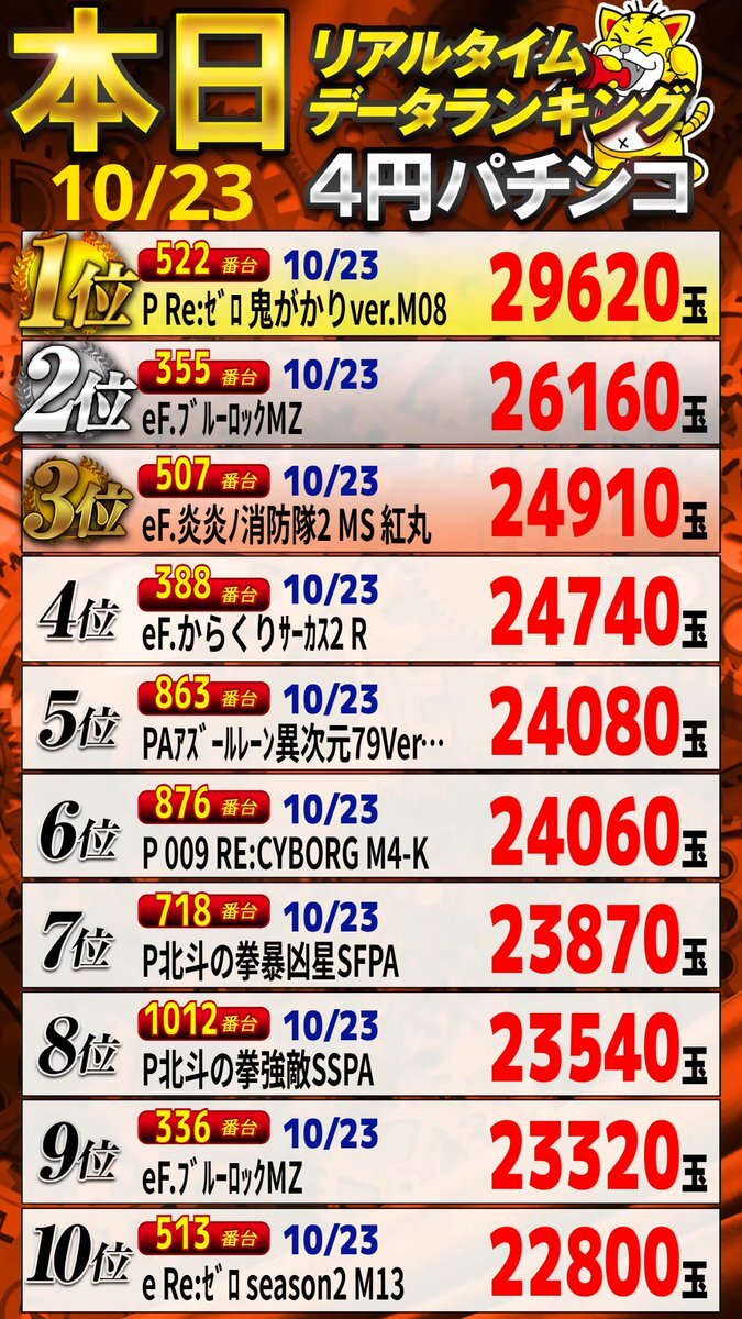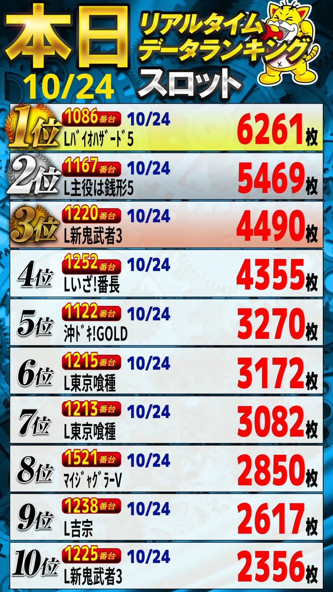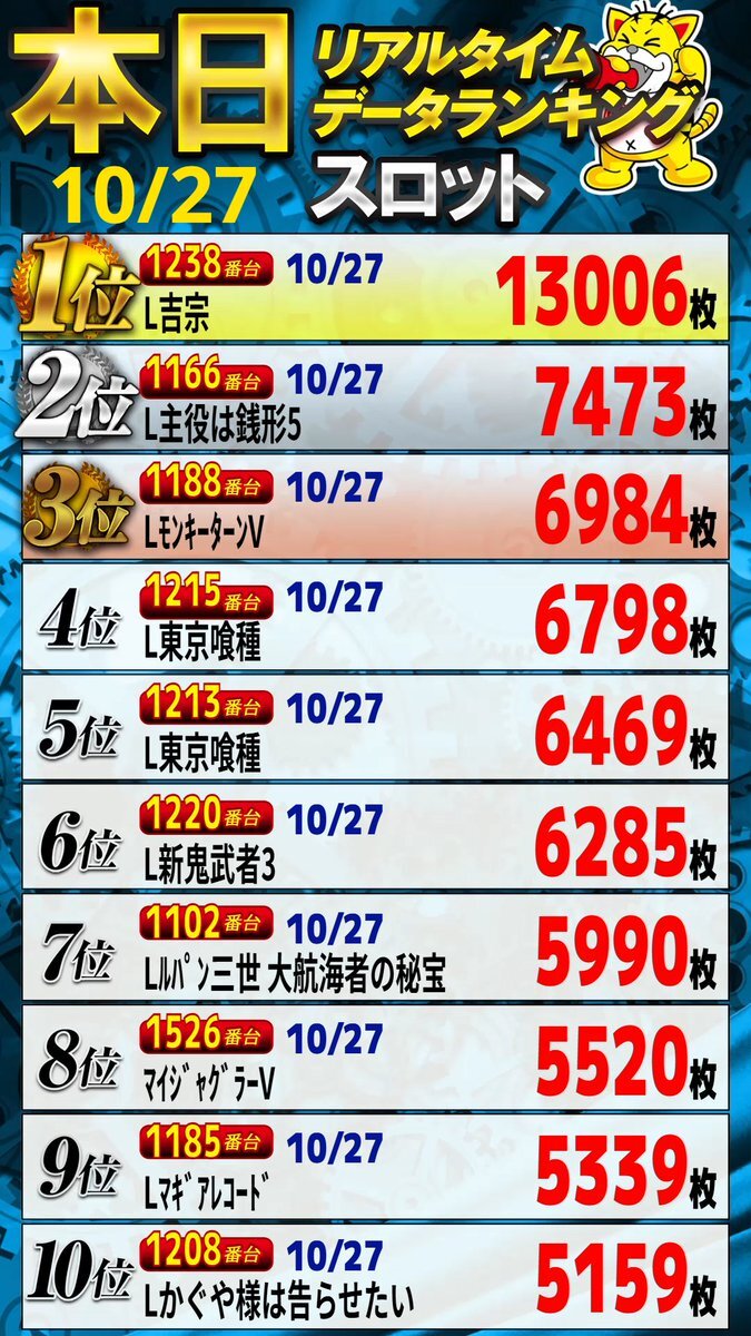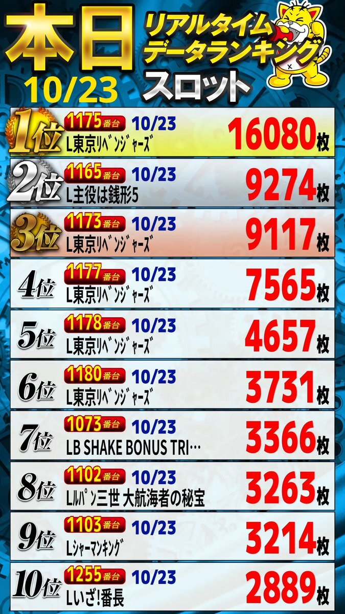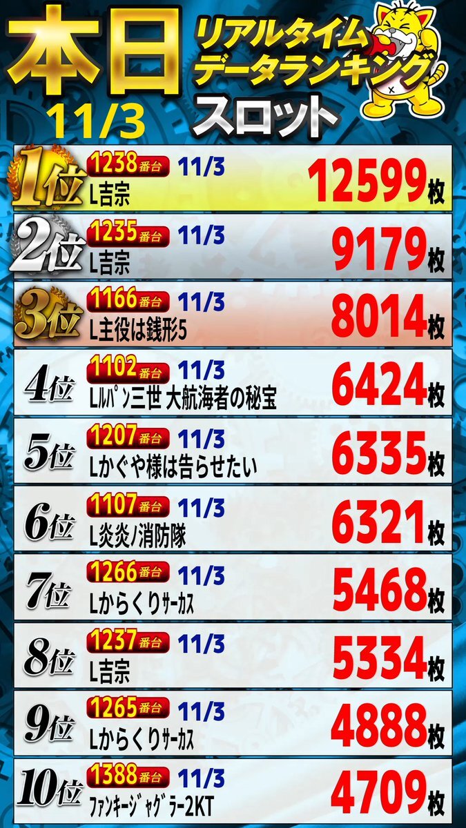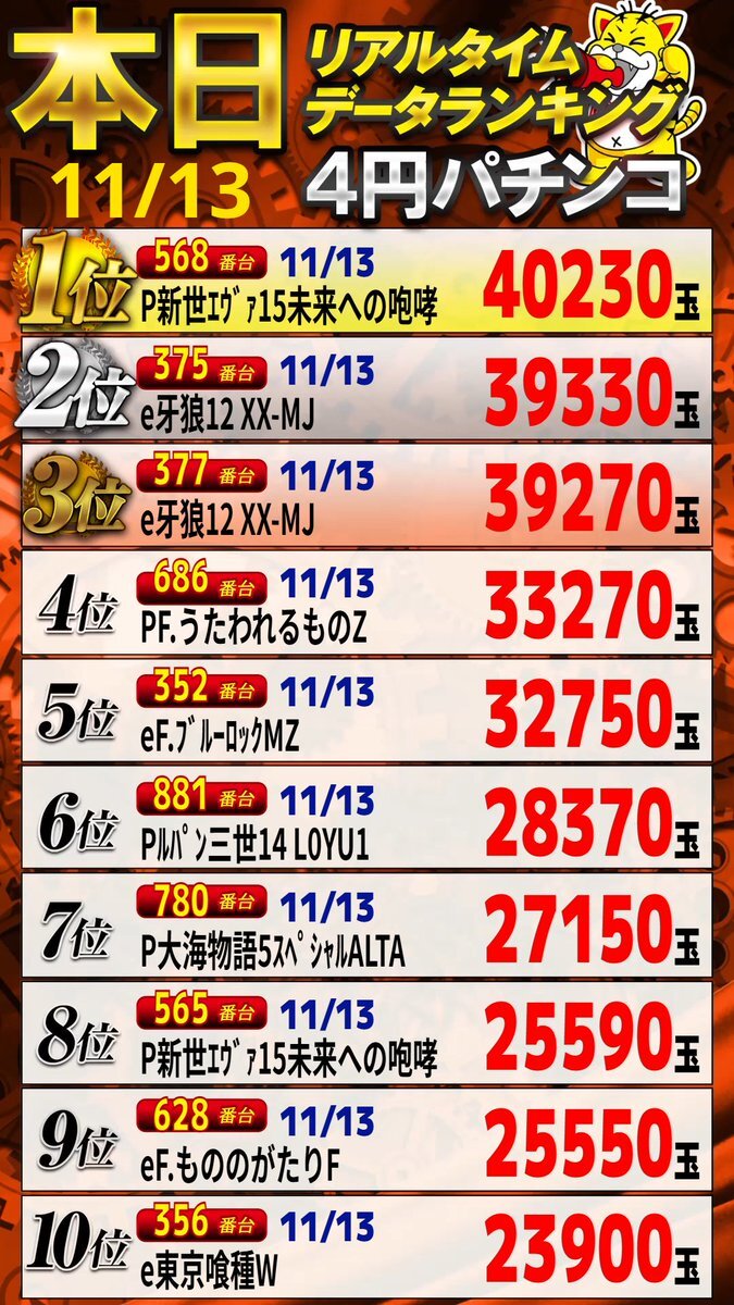 スロットはなんと4機種が ㊗㊗ランクイン🎉🎉 明日も朝から待ってるぜっ✌ #フェイス宮田 pic.x.com/l2y9UluoKy