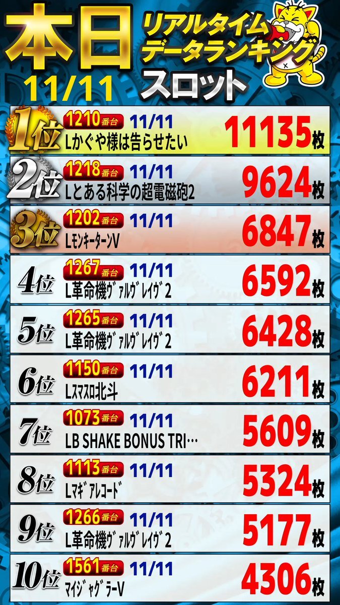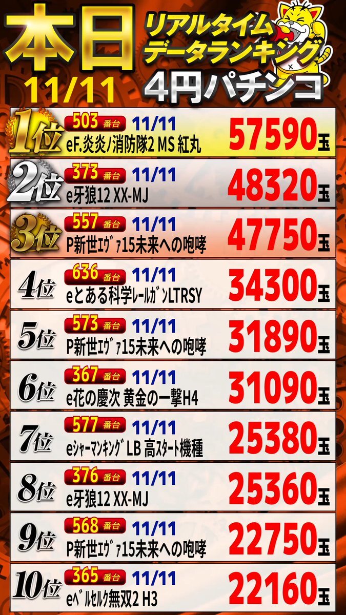 11月11日結果はこちら🧐 かぐやさま&炎炎ぶっちぎり🌈 #フェイス宮田 #全店合同 pic.x.com/LOyVWDSlNf