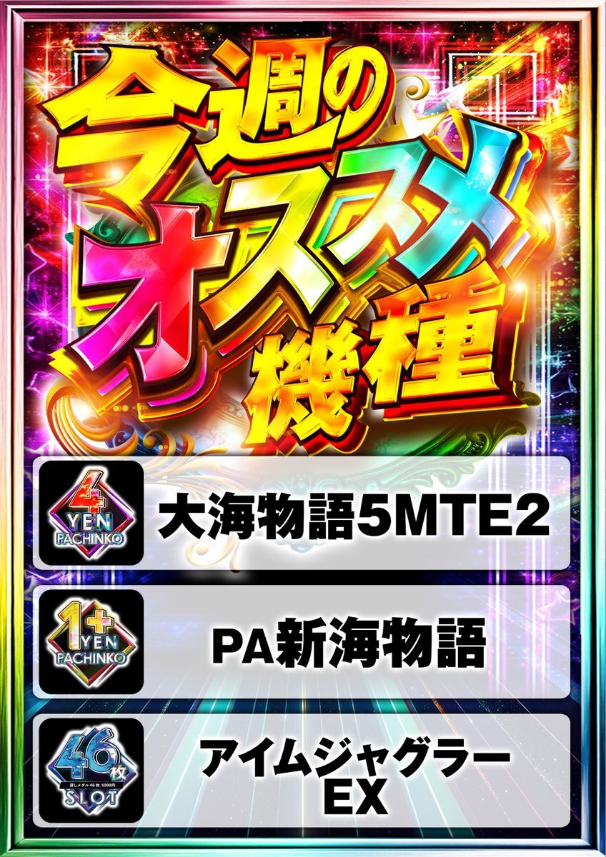 今週のおススメ機種乗せときます🎶 明日も元気に10時OPEN🕙 LINE抽選9:00~9:40受付💁 #フェイス宮田 pic.x.com/5WwpjDbllV
