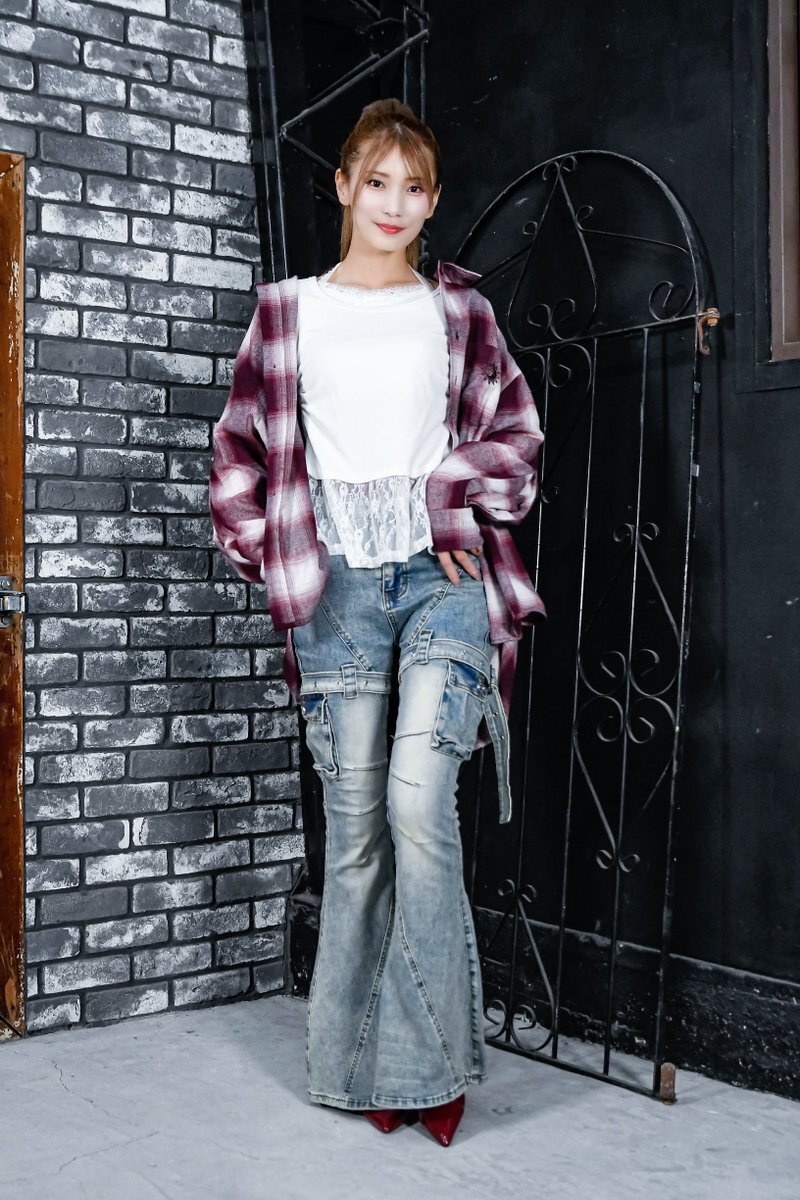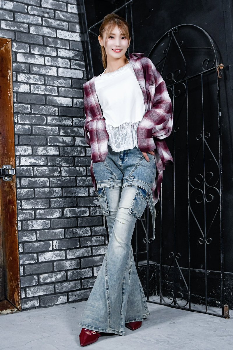 2025.11.9 #フェスタソーレ撮影会 2部 ‍‍ベルボトムジーンズも相まって、更に足が長く見えてマジスタイルよすぎぃ! ヴィンテージっぽいカラーとかトップスも相まって、ちょい古感出てるのがまたいいよなぁ…マジでハイセンスすぎるナ😌 #辻門アネラ さん(@tsujikado_anera) #アネラバ pic.x.com/hj68uDDiZv