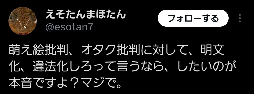 自分が何を言ってるのか[把握]出来ないのかな? 「萌え絵批判、オタク批判に対して違法化しろ」って。 「批判する人を違法として取り締まれ」の意に成らない? @esotan7 #ツイフェミ #フェミニスト pic.x.com/Spcm5fmmZI