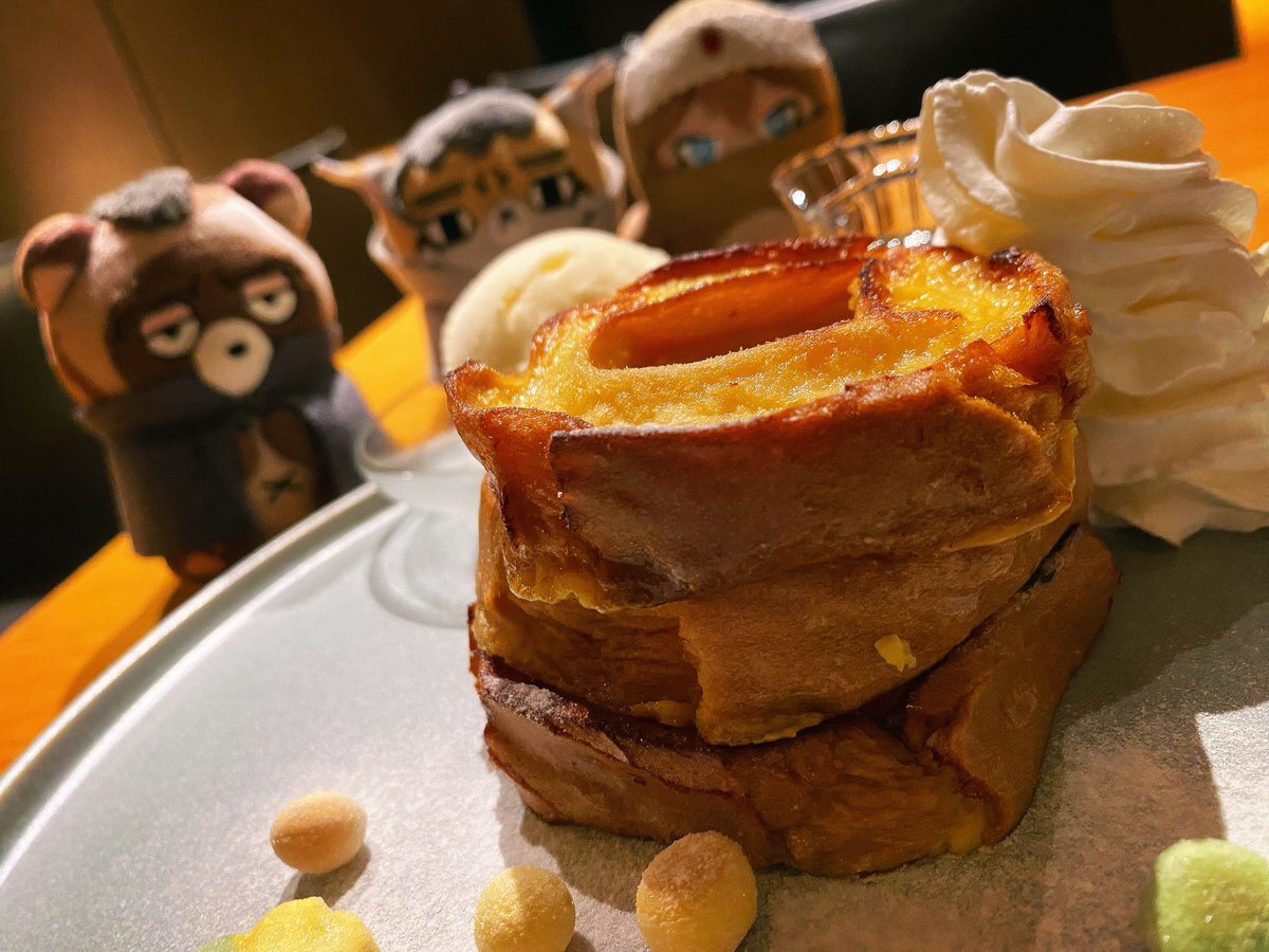 狂ったように走って疲れたら ちょっと一服しましょ 美味しいもの食べて 今日も楽しかったねって笑って 2028年までゴを楽しみ切りましょう #フォゼ倉といっしょ #フォゼ尾といっしょ #フォゼヴァといっしょ #金カムぬい撮り部 (加賀麩のフレンチトースト) pic.x.com/6NBVN1tRZm