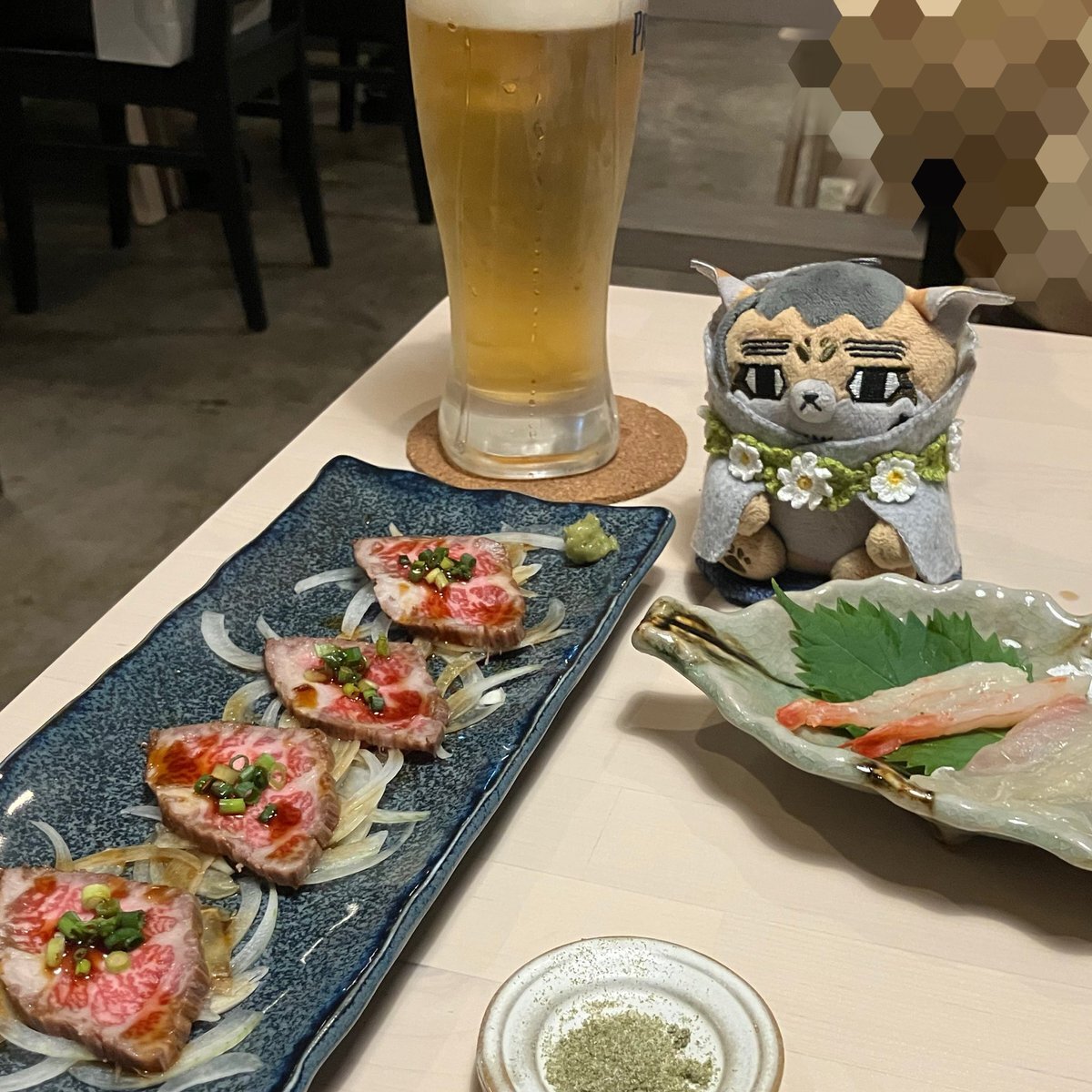 わーいわーい☺️ ライブの前に乾杯🍻✨✨ ようしぇいしゃもこんにちは😋 フォゼ尾ちゃん見てー!! チャムチャム…ムシッ 美味しいものを目にすると視線を合わせてくれない🤣 #フォゼ尾といっしょ pic.x.com/4jeAt0UIgh