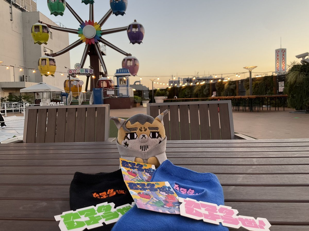 🧦屋で買ってもうた😆ステッカーがおまけに付いてくる。 夕暮れの観覧車🎡は良い。 観覧車から見る、真冬の空気が澄んだ時の光景はあなどれない👍 #フォゼ尾といっしょ pic.x.com/jVdpDPQPrg