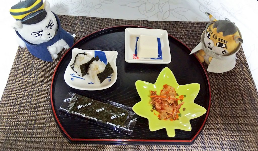 豆皿豆腐という可愛いお豆腐を買ったのでニャンコ先生の豆皿縛りでキムチも添えて😌 味のりのもち麦入りミニおにぎり🍙🍙 #OnigiriAction #ニコニコのりとおにぎりアクション #フォゼ尾といっしょ #フォゼ島といっしょ pic.x.com/jMQn5Ziq7f
