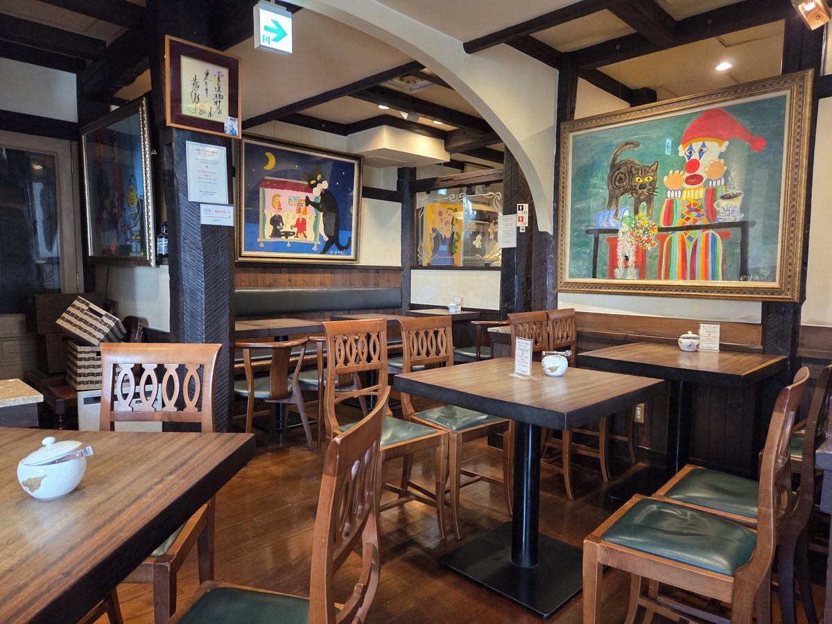 #フォゼ尾といっしょ 折角、有楽町まで来たから行ってみたかった喫茶店に入った。北野武さんの絵がたくさん飾られている喫茶店☕食器がマイセンで嬉しい☺️✨コーヒーも好きな味でゆったり出来るお店だった。フォゼもずっとテーブルに居られたね😉 pic.x.com/BxGDGEeT6x