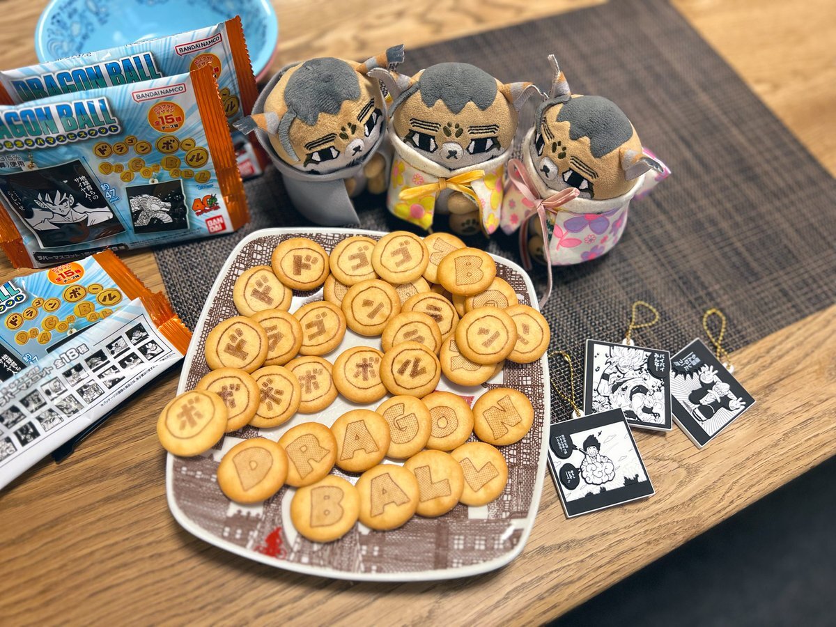 おやつ 3袋でやっと英語がそろった!! カタカナは『ー』だけ足りず無念 🐱ドドドラゴゴゴンン 🐱ボボボボボル 🐱DRAGONBALL🐉✨ ラバーキーホルダー悟空かわいい🧡 #フォゼ尾といっしょ pic.x.com/ymAKmTa89M