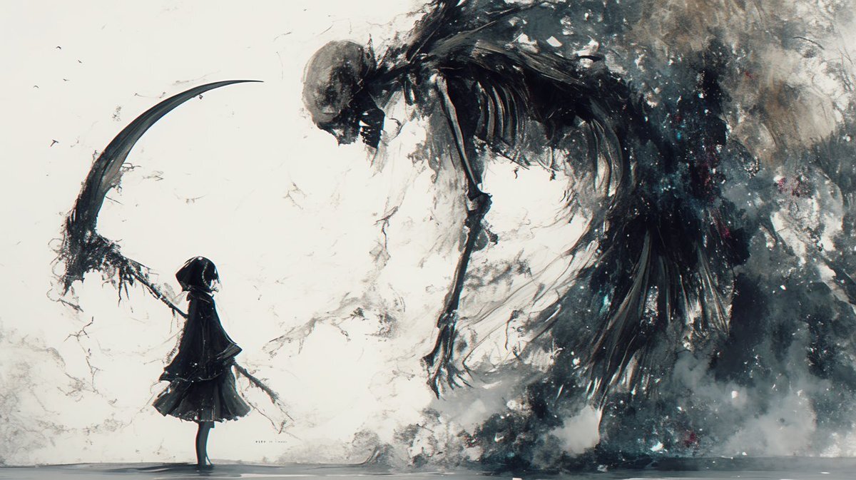 「死神と少女」 もう会えない。 だから、これを持っていなさい。 #AI #AIart #AIイラスト好きと繋がりたい #AIイラスト #AIイラスト術師さんと繋がりたい #フォロワーが増えて欲しい pic.x.com/eTlcA5YBuh