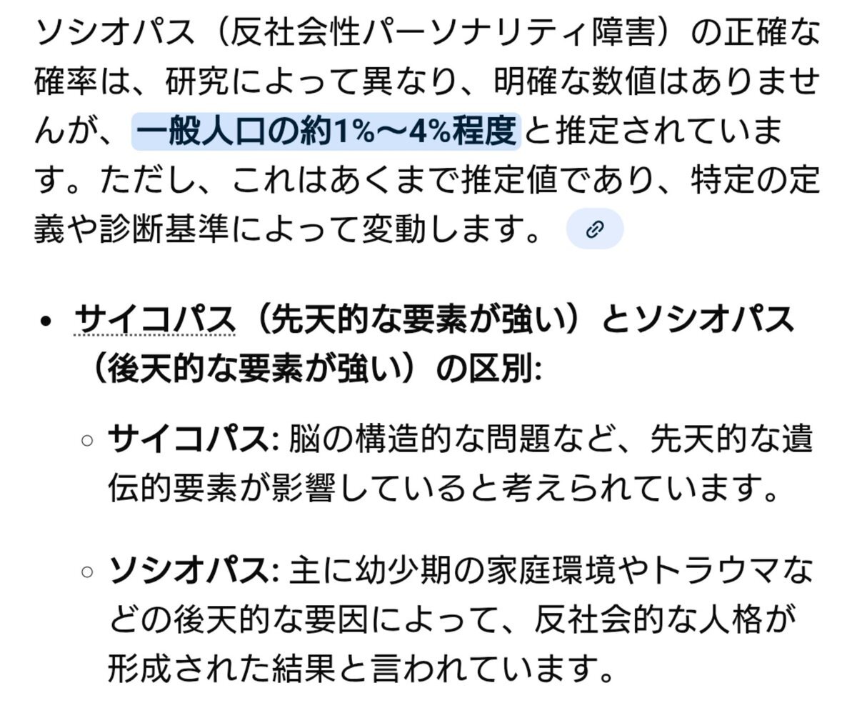 ソシオパス(反社会性パーソナリティ障害)って現実的な確率でいるのよ。 AKB48G、フジテレビ、日テレなど大所帯になれば普通に紛れ込んでるとオレは思う。 #山口真帆暴行事件 #フジテレビ問題 #日テレ問題 pic.x.com/MjdO45liMR