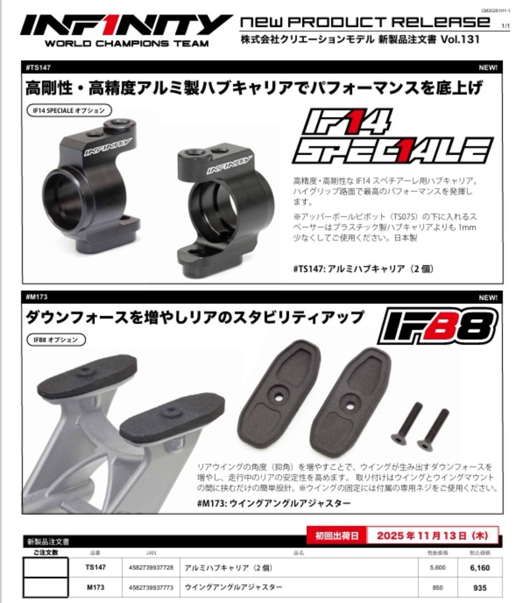クリエーションモデルさんから INFINITYのNewオプションが入荷致しました。 よろしくお願いします #infinity #inf1nity #if14SPECIALE #ifb8 #proshopfutaba #フタバ模型 pic.x.com/bkX0lWiEXt
