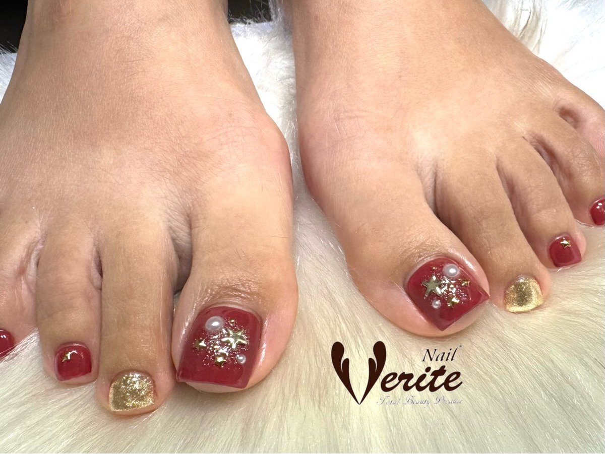 冬でもフットネイルおすすめです✨ 赤でクリスマスっぽく🎄可愛かったです♡ k #ネイルヴェリテ #練馬区 #大泉学園 #ネイルサロン #日本ネイリスト協会 #当日予約大歓迎 #駐車場無料 #フットネイル pic.x.com/P9gYVJelMX