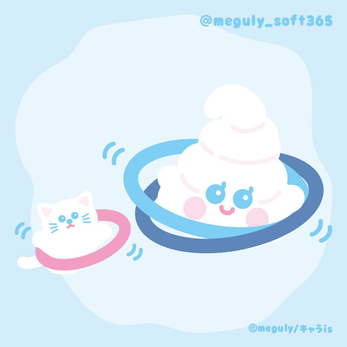 今日は #フラフープ記念日⭕️ フラフープで あそぶ ソフトクリームのあたまくんたち🍦🐈 ふたつ同時にまわせるの すごいね👀 #今日は何の日 #イラスト #illustration #りぼんぱ~ら~のファンシーイラスト #ソフトクリームのあたまくん #キャラis pic.x.com/vA3NQhDm63
