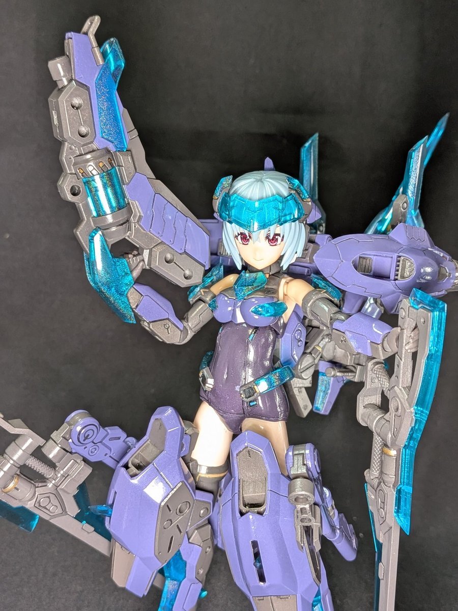 さて開店待ちつつフレームアームズガール、フレズヴェルク(青フレズ)完成しました 自分にとって青フレズといえばアーテル前提のアニメフレズなのでチーパオVerのフェイスとコンパチ 途中アクシデントでだいぶかかりましたが、研ぎ出し頑張った回はある…はず #フレームアームズガール pic.x.com/DRZzVLrH6v