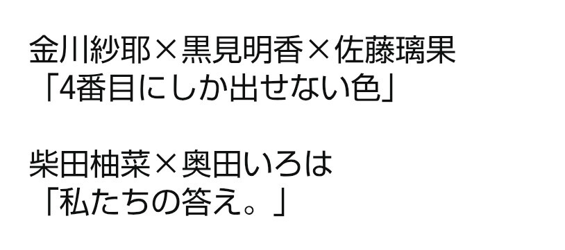 特典ポストカード 綺麗に単推しが分かれてしまっている #松尾美佑 #金川紗耶 #林瑠奈 #奥田いろは #黒見明香 #吉田綾乃クリスティー #ブブカ魂のアンダーライブ特集 pic.x.com/80qUDHkUPK