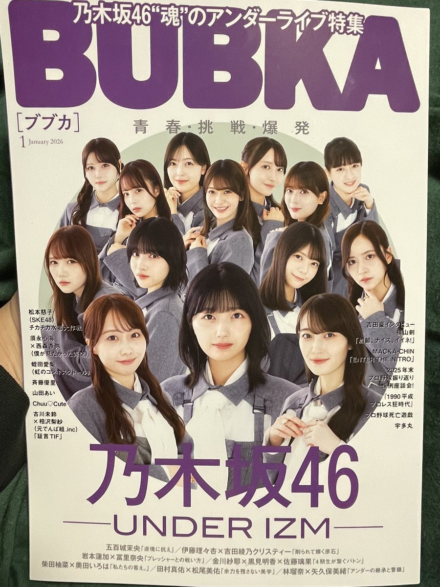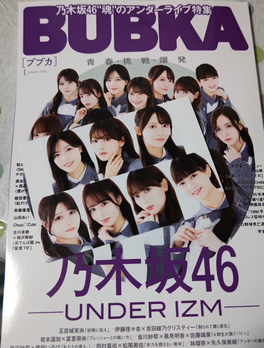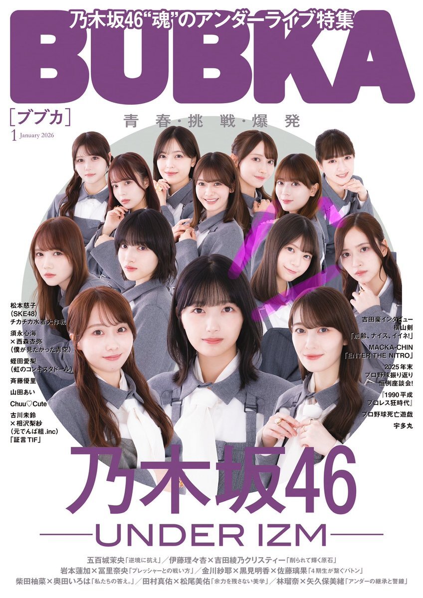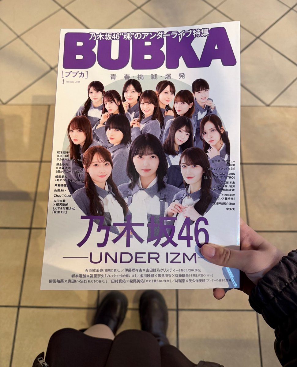 ╔══════════════╗ 🔥 魂のアンダーライブ特集 🔥 ╚══════════════╝ 11月29日(土)発売『BUBKA1月号』表紙&巻頭は #乃木坂46 の40thシングル全アンダーメンバーが登場。 35ページぶち抜きアンダーだけの大特集です! なぜ、今アンダーライブの特集を組んだのか。