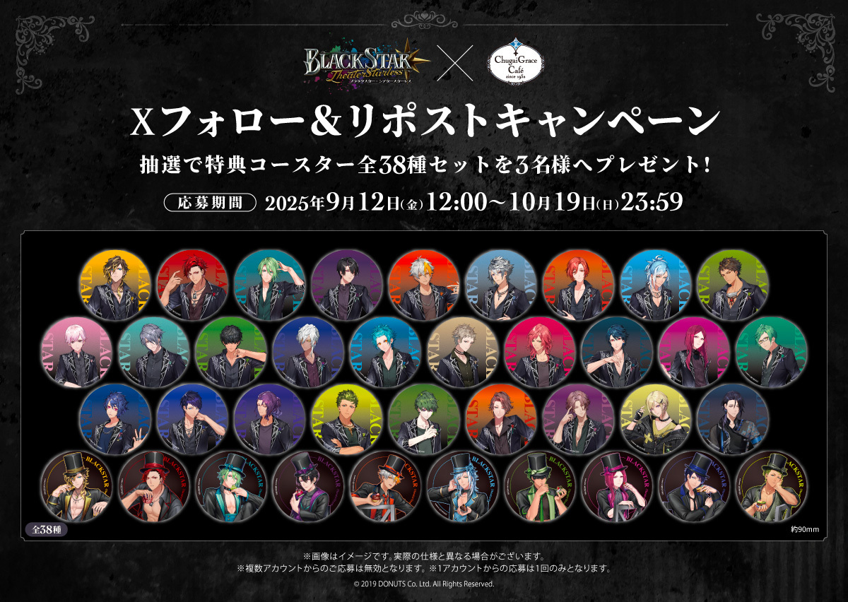 【ブラックスター -Theater Starless-コラボカフェ】コラボカフェ \Xフォロー&リポストキャンペーン/ 抽選で『コースター全38種セット』を3名様へプレゼント! <応募方法> ①@chugai_g_cafe をフォロー ②この投稿をリポスト 詳細はこちら▶chugai-grace-cafe.jp/collaboration/… #ブラスタ #ブラスタ6周年 pic.x.com/gwjy01lj5o