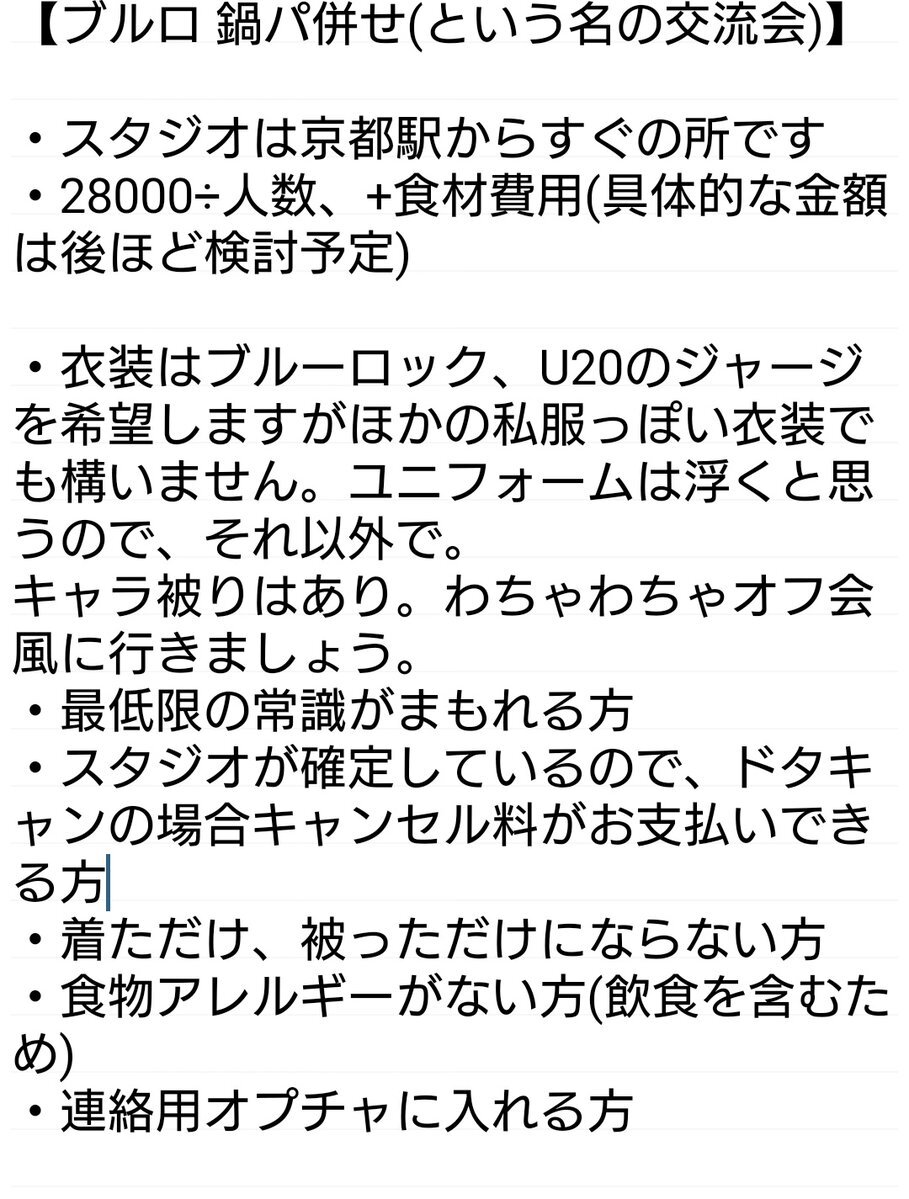 【併せ(?)募集】 12/14に、京都でブルロの鍋パという名の交流会をしませんかという企画です。 ご興味のある方、質問のある方、私までお声がけ下さい。