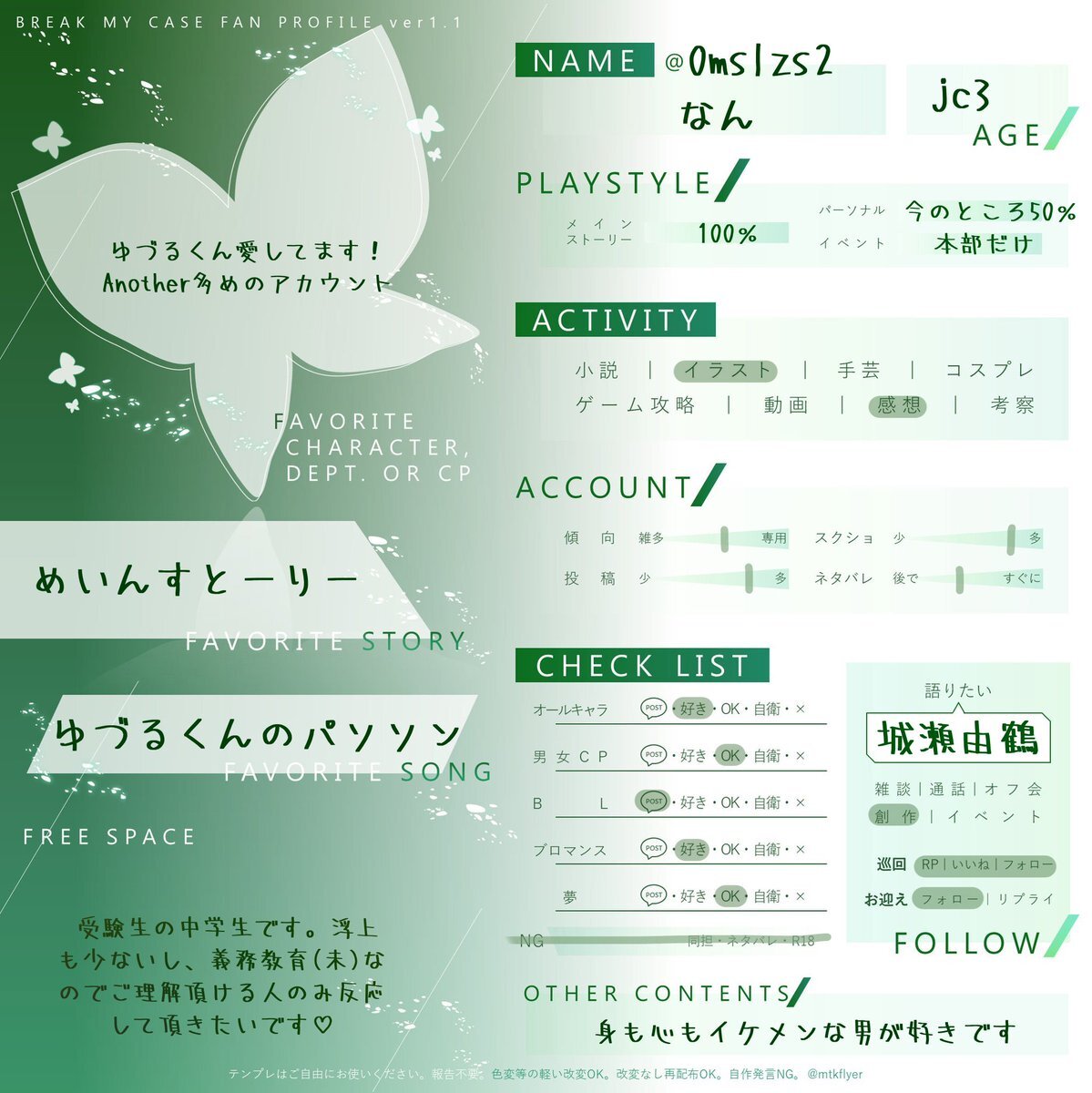 マイペースにSS書いてるブレマイ専垢です 文字書き様中心に気になる方お迎えします☺️! 素敵なご縁がありますように🕊🍀 #ブレマイ自己紹介カード #ブレマイ好きな人と繋がりたい #ブレマイ好きさんと繋がりたい
