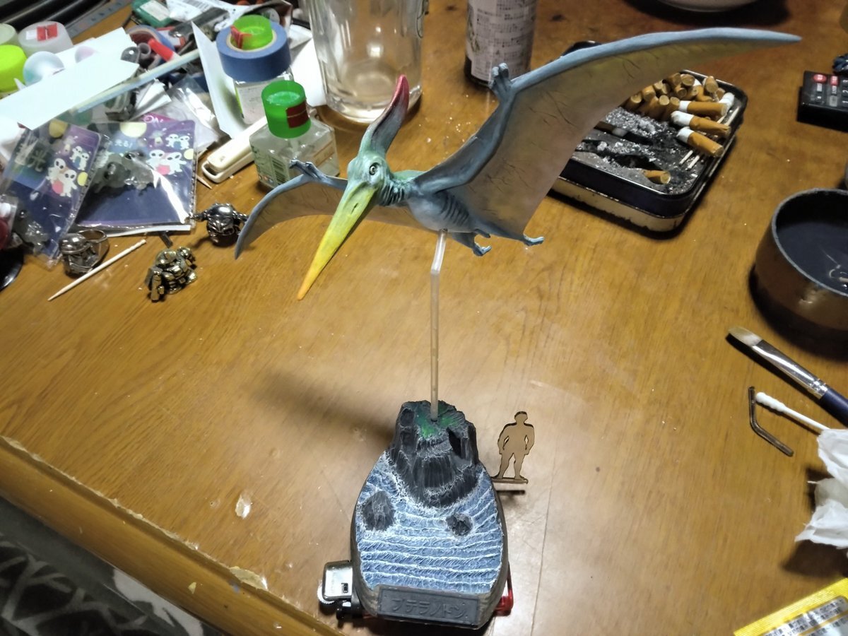 海洋堂のガチャ、モササウルス~っと2回回したのですが、出なかった。500JPY/回は強敵です。 お腹のディスプレイ用の軸穴に針金差して模型を保持しながら撮影しているので正面から撮れない。。。 #ガチャ #白亜紀 #プテラノドン pic.x.com/1ZBcUHMWUj