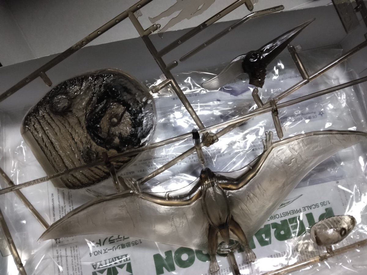 いきもの大図鑑DISPLAY MODEL 恐竜03のプテラノドンをGET! このシリーズは今回が初購入ですが、翼の皮膜や下顎の動きを現す皺のディテールがリアルだと感じました✨ ゲットして組み上げた時はプテラノドンに似合うかどうかは別にして「飛翔」の言葉が内面から出てきました。 #古生物 #プテラノドン pic.x.com/r0DPeQAbLC